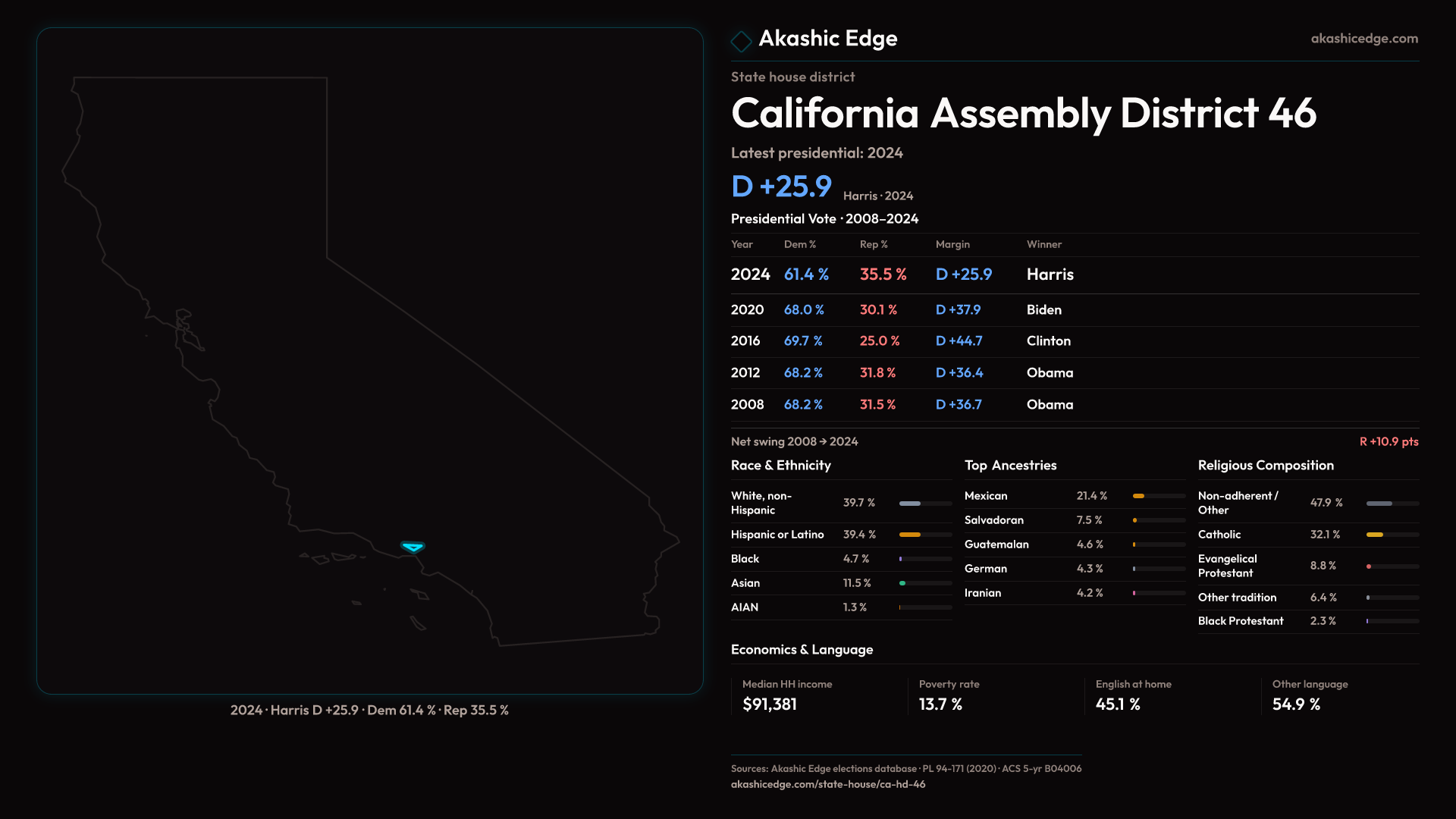 Explore CA-HD-46's political evolution with the Historian