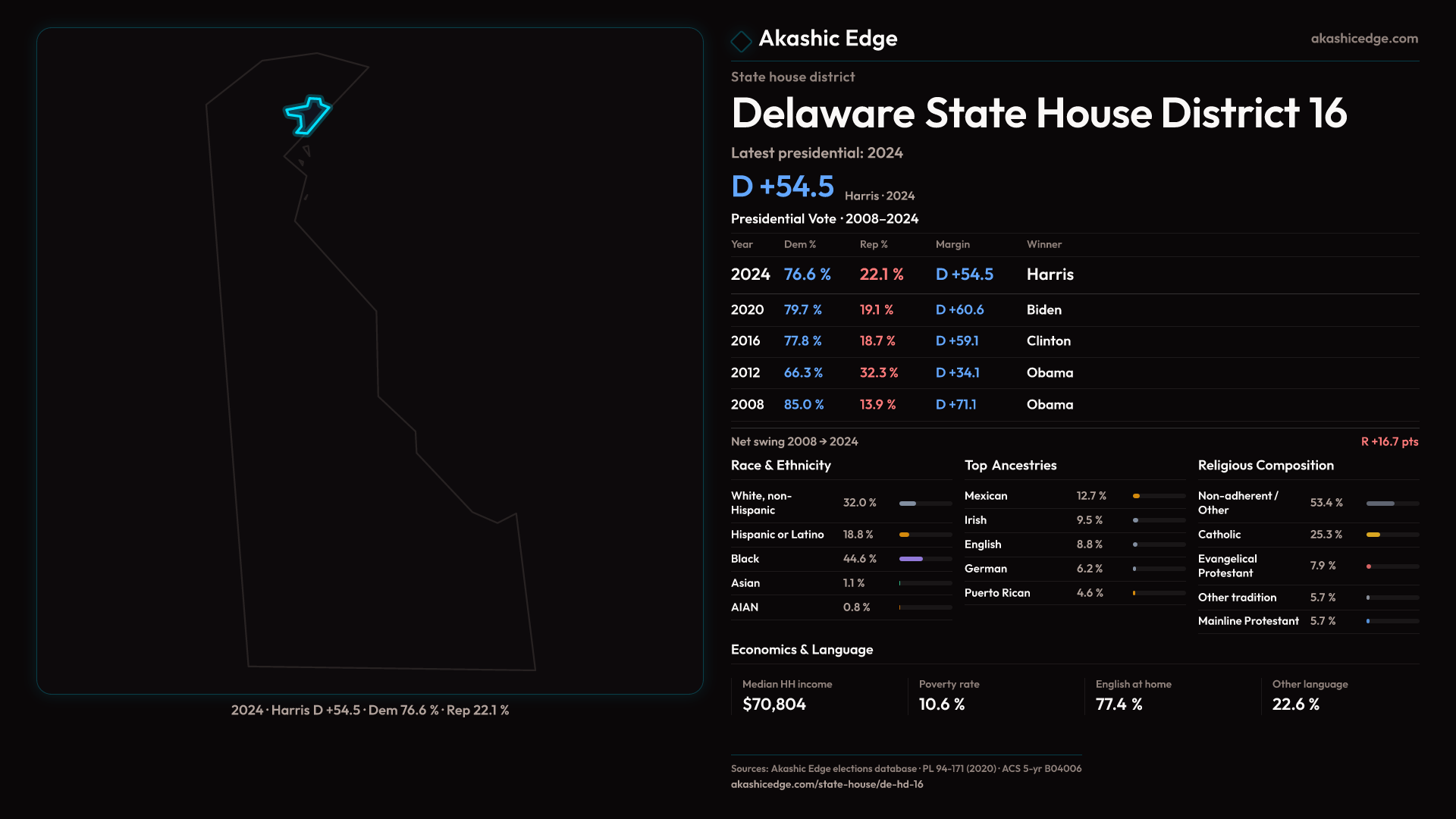 Safe Democratic — shifted 6.1pp toward Republicans in 2024 — 24K residents