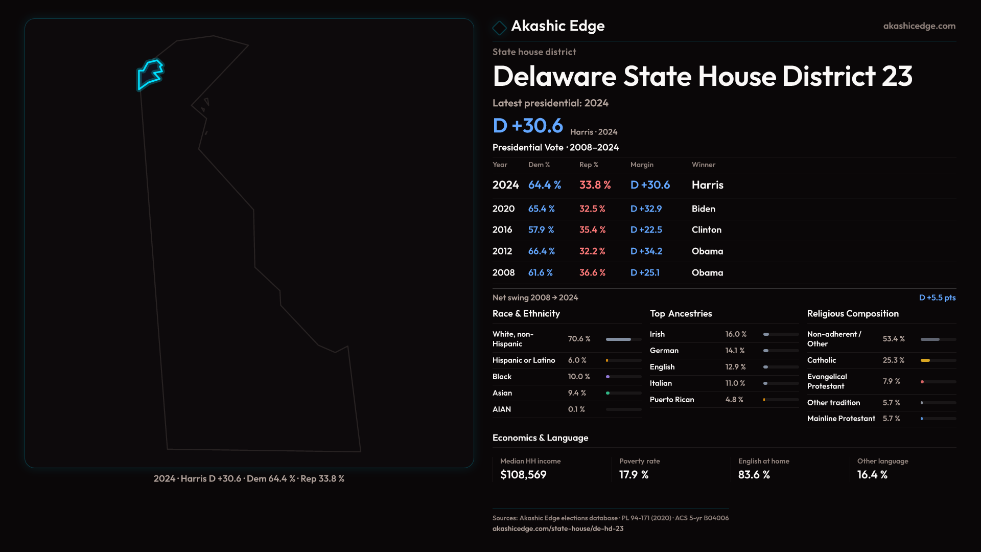 Who lives in Delaware State House District 23? 23,870 residents as of the 2020 Census.
