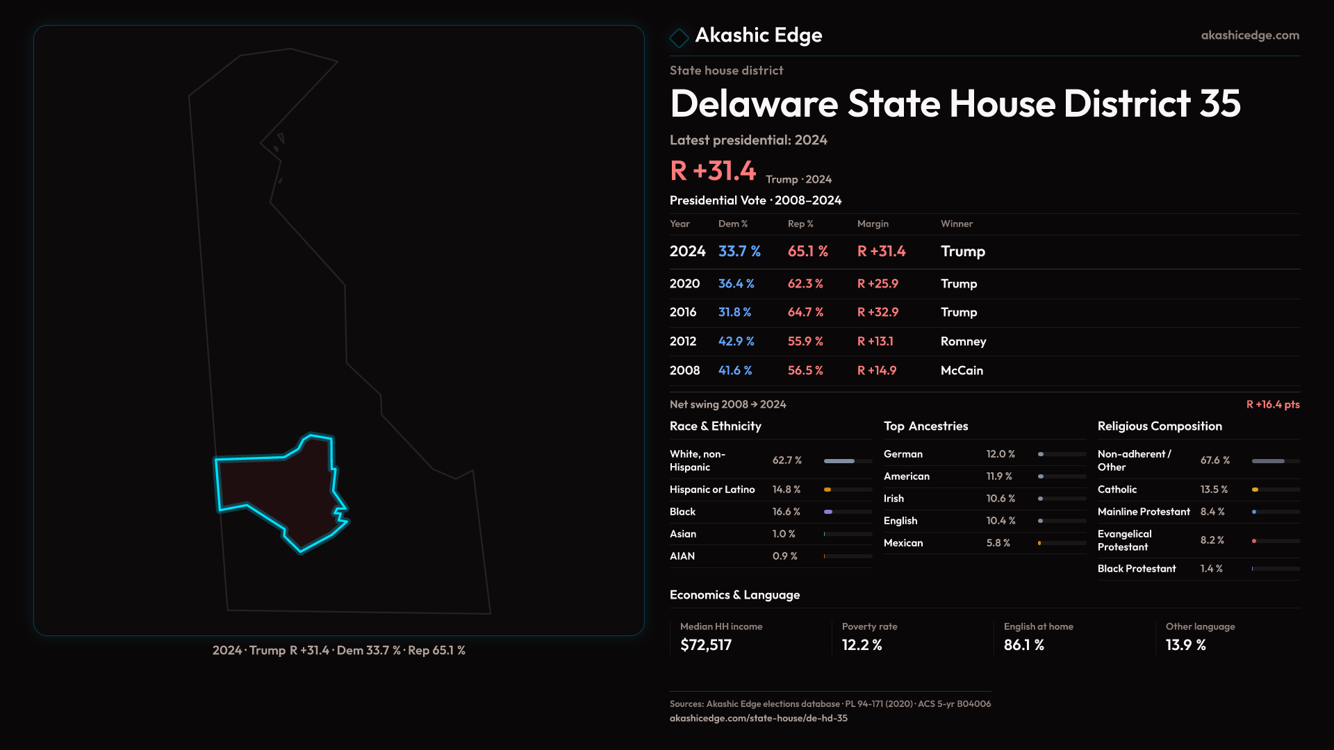 Shifted 5.5pp toward Republicans in 2024 — 23K residents