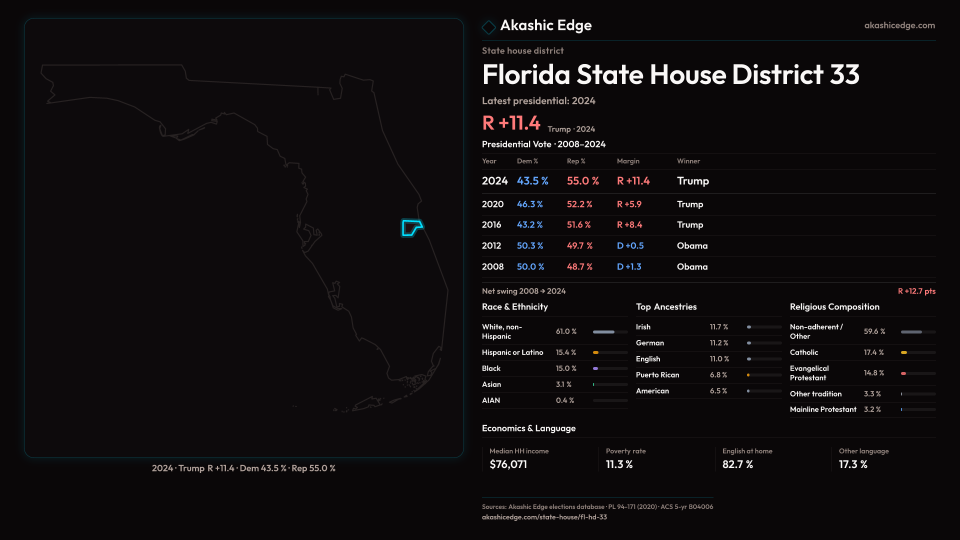 Shifted 5.6pp toward Republicans in 2024 — 183K residents