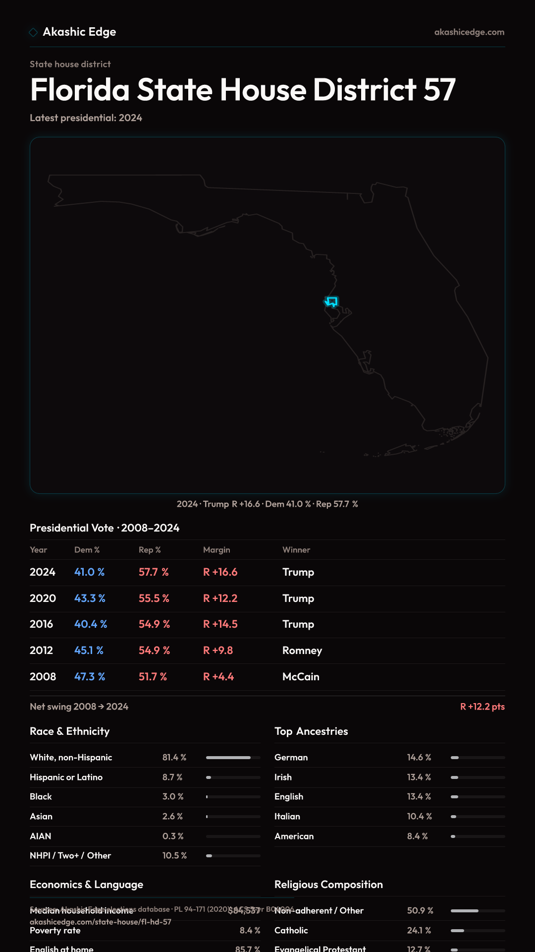 Who lives in Florida State House District 57? 177,325 residents as of the 2020 Census.
