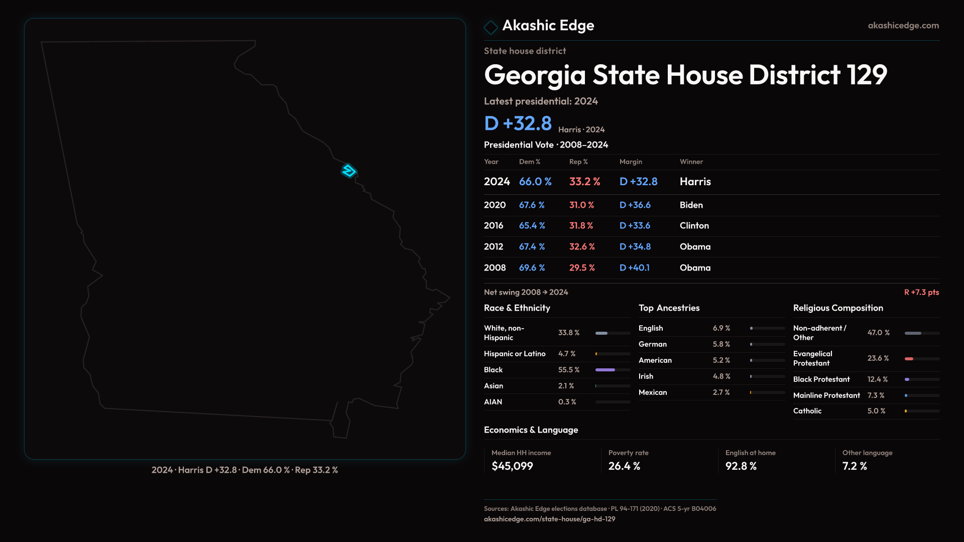 Who lives in Georgia State House District 129? 58,829 residents as of the 2020 Census.