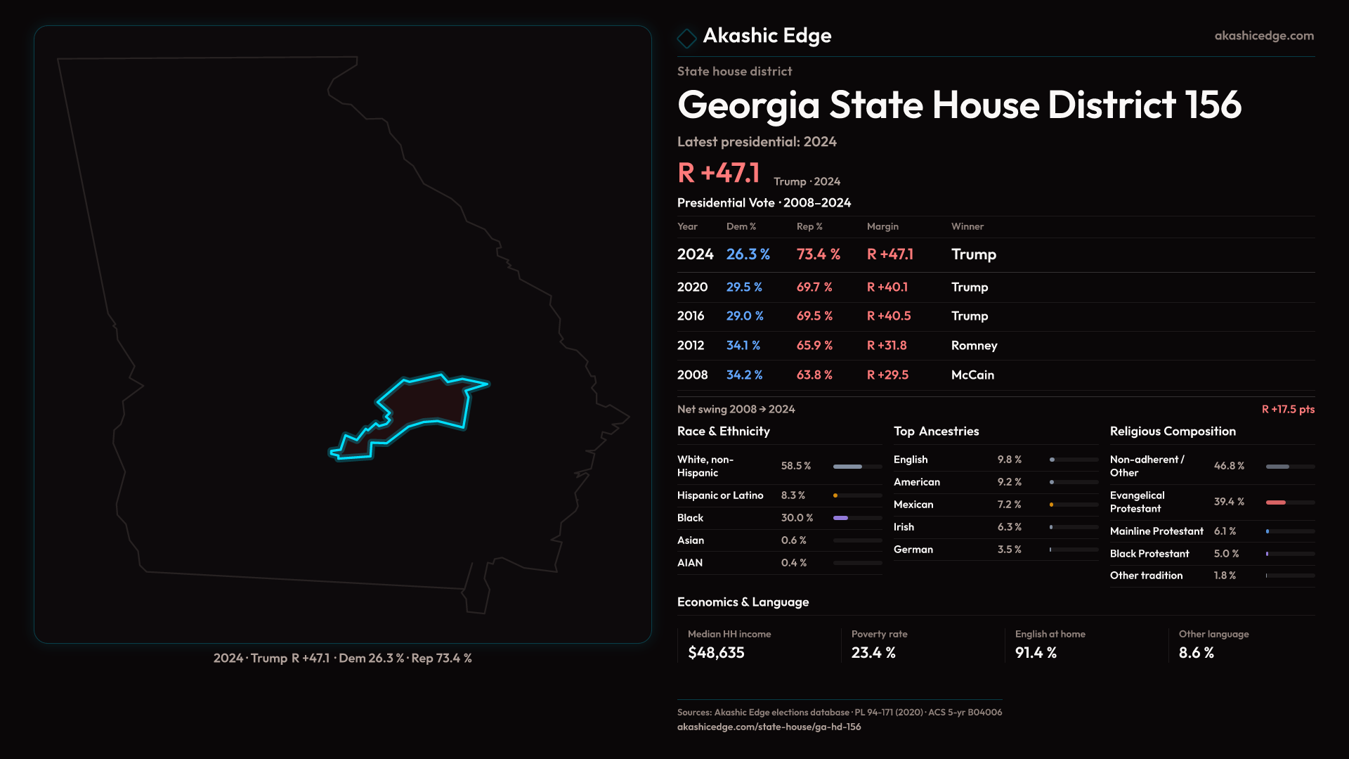Shifted 6.9pp toward Republicans in 2024 — 59K residents