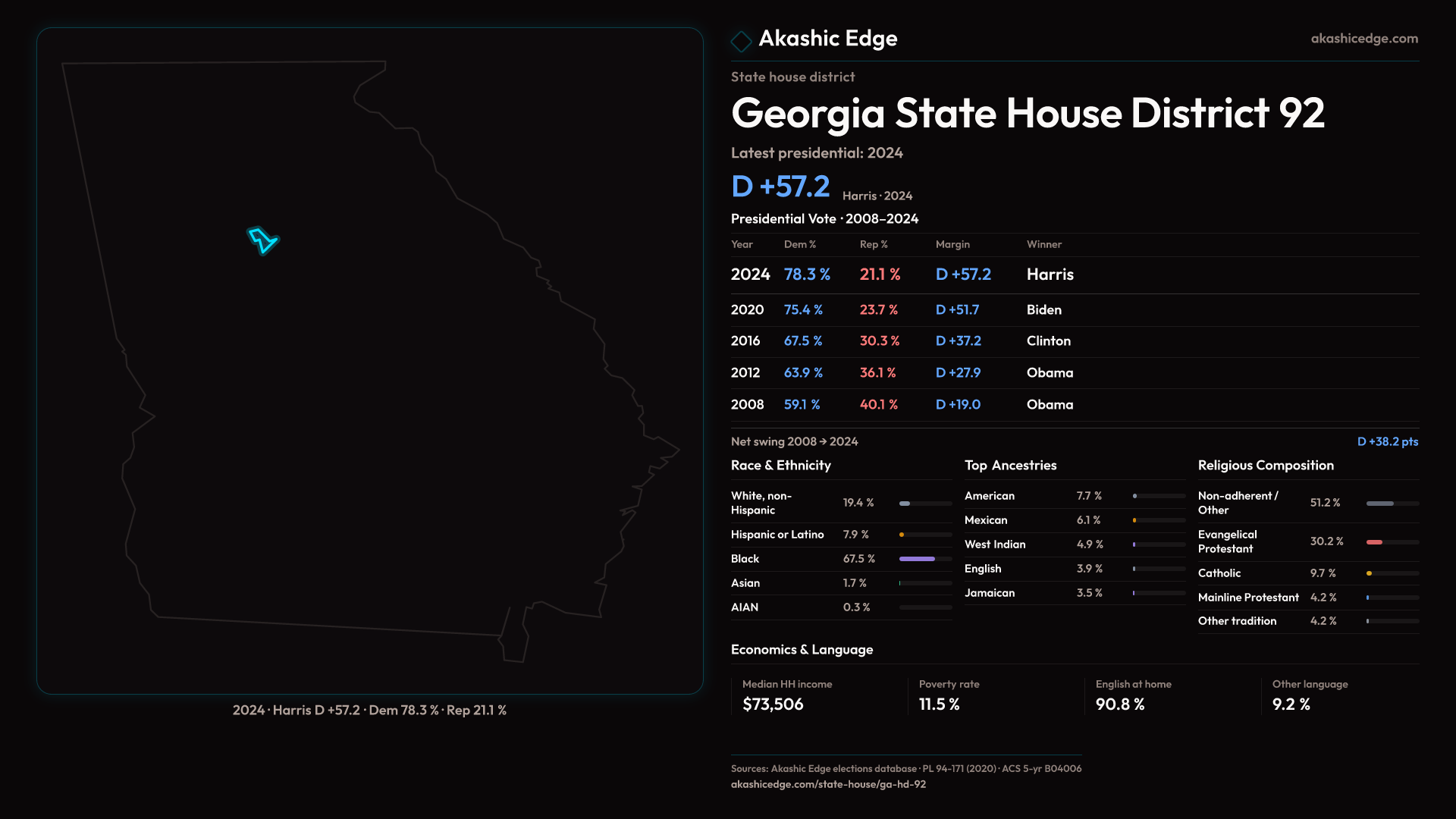 Shifted 5.5pp toward Democrats in 2024 — 60K residents