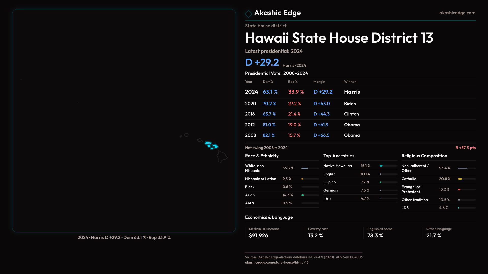 Who lives in Hawaii State House District 13? 27,131 residents as of the 2020 Census.