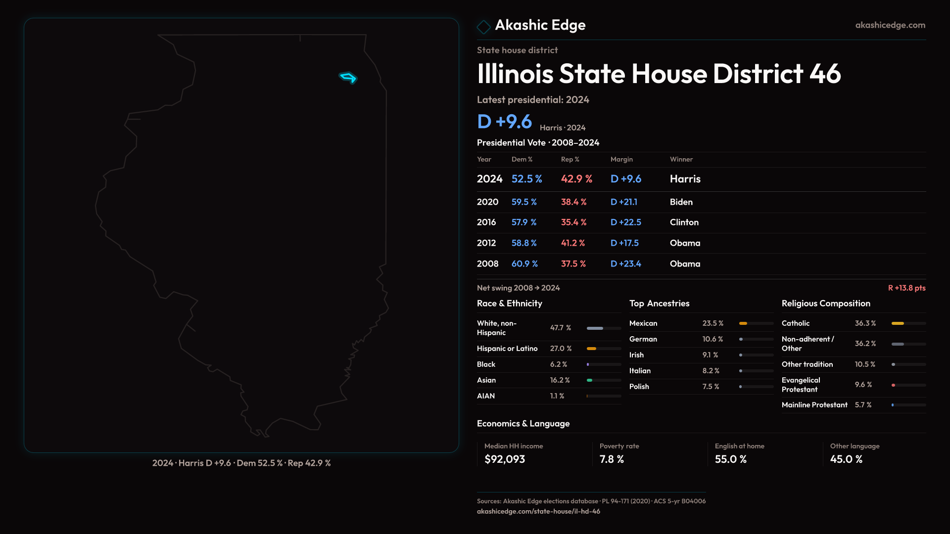 Who lives in Illinois State House District 46? 108,562 residents as of the 2020 Census.