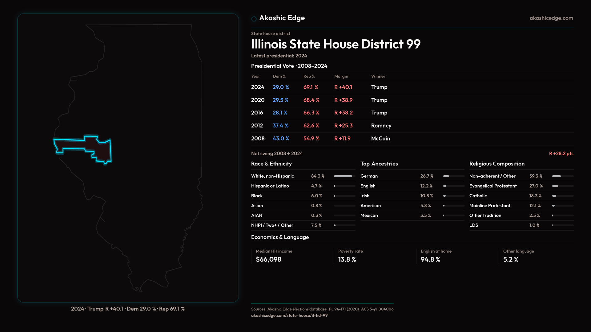 Who lives in Illinois State House District 99? 108,582 residents as of the 2020 Census.