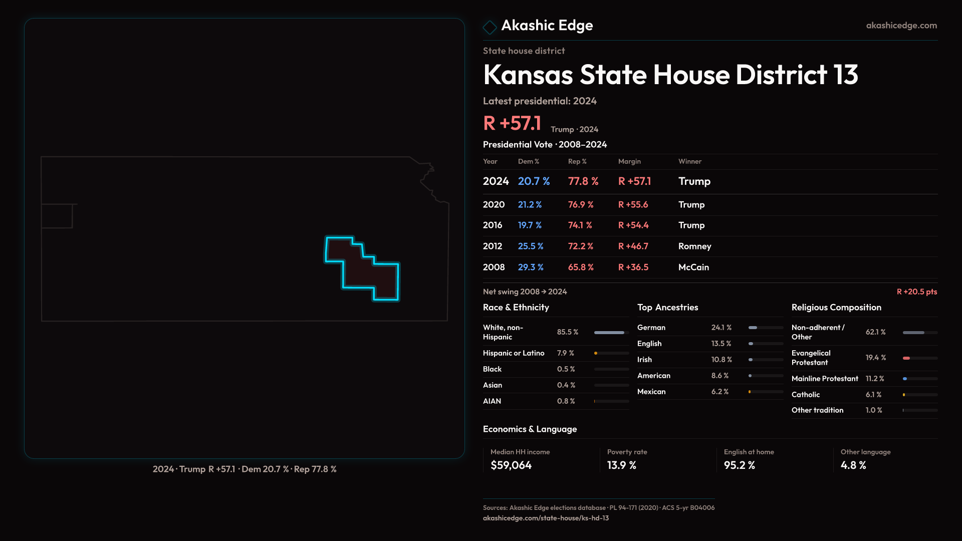 Who lives in Kansas State House District 13? 22,700 residents as of the 2020 Census.