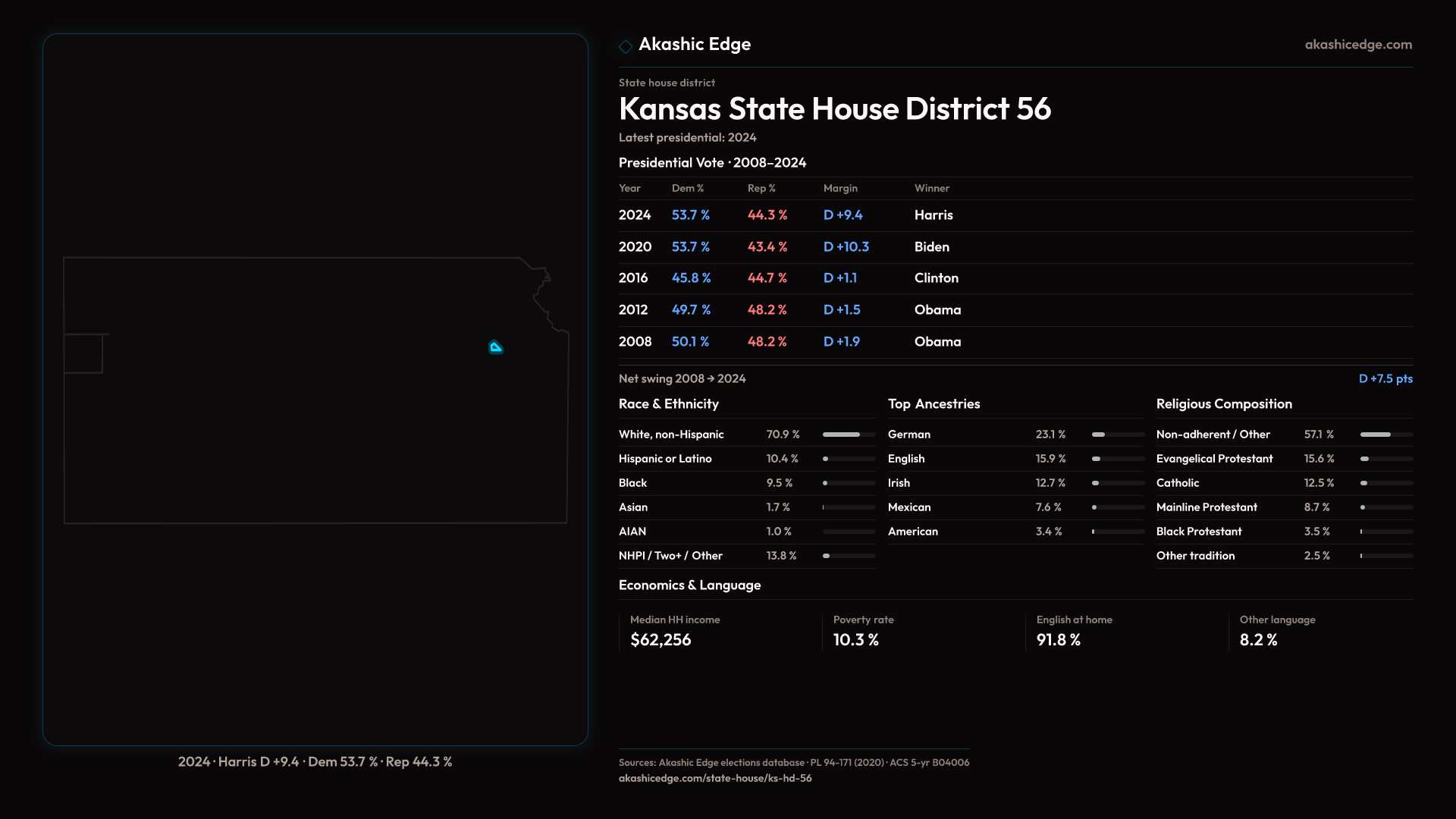 Who lives in Kansas State House District 56? 23,535 residents as of the 2020 Census.