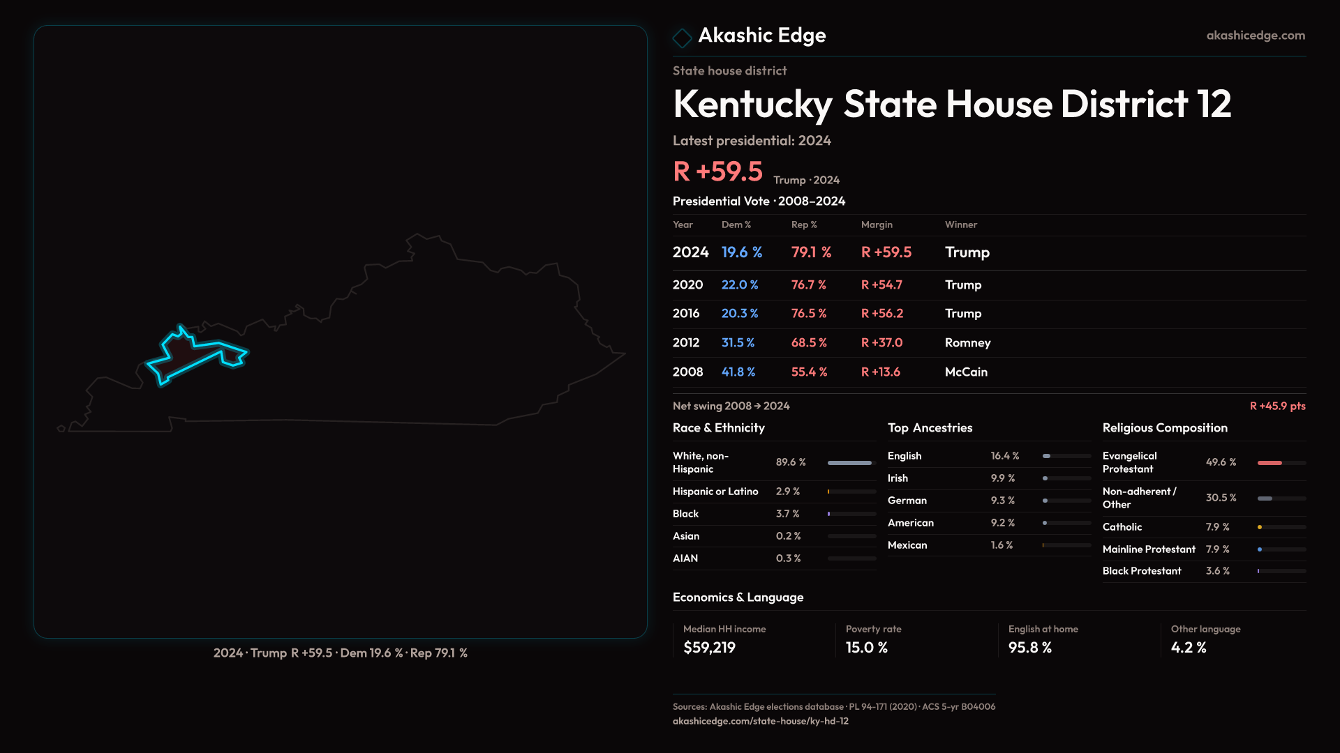 Who lives in Kentucky State House District 12? 44,827 residents as of the 2020 Census.