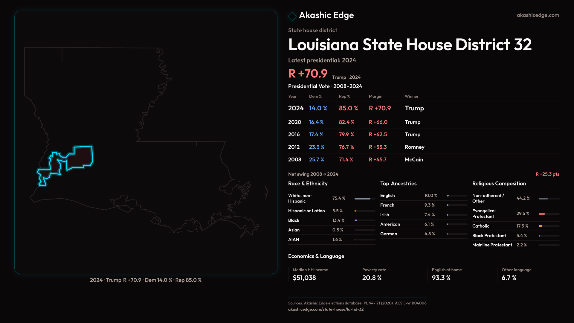 Read this geography's profile in three layers: local, state (where available), and national baseline.