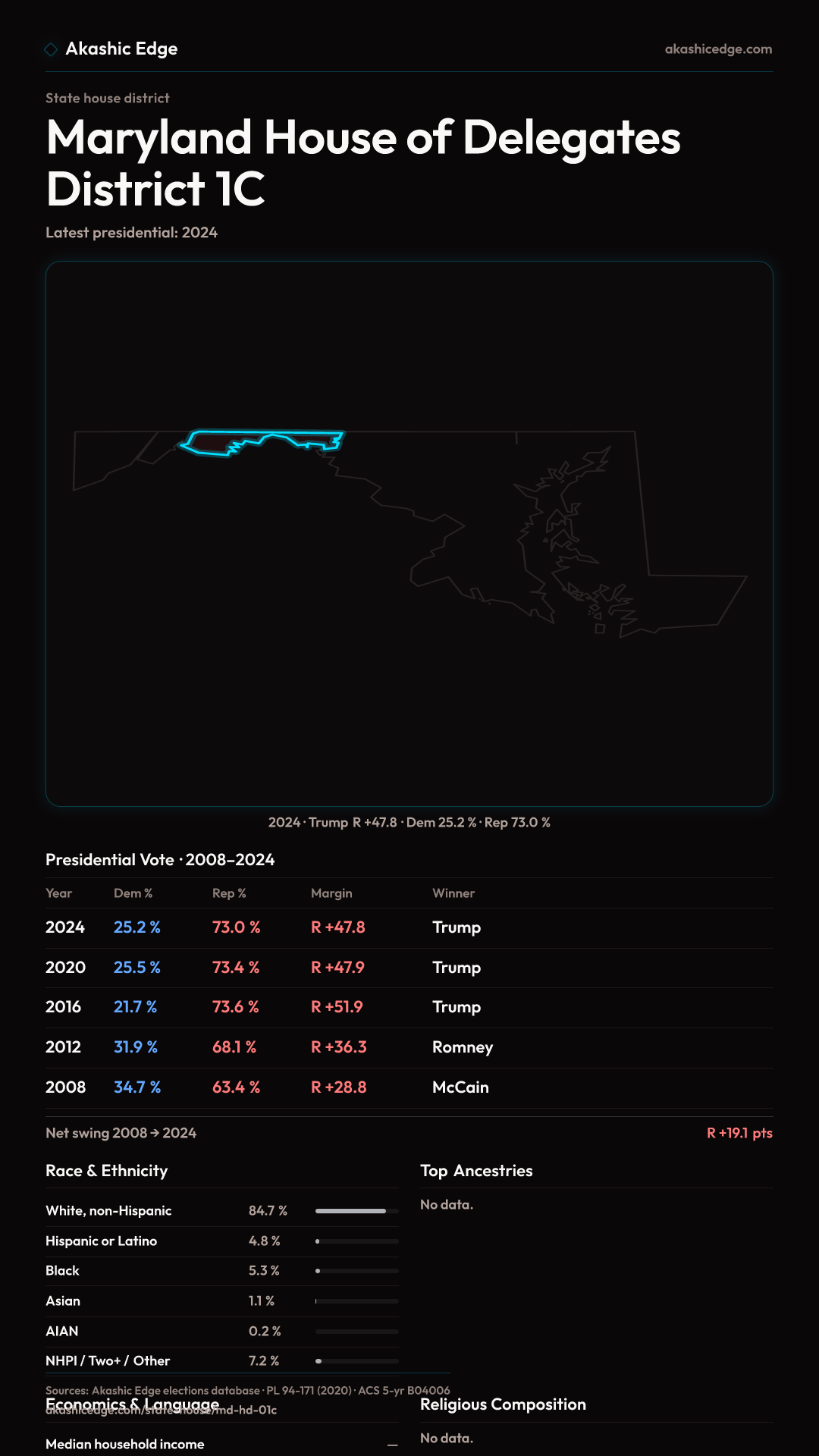 Who lives in Maryland House of Delegates District 1C? 44,836 residents as of the 2020 Census.