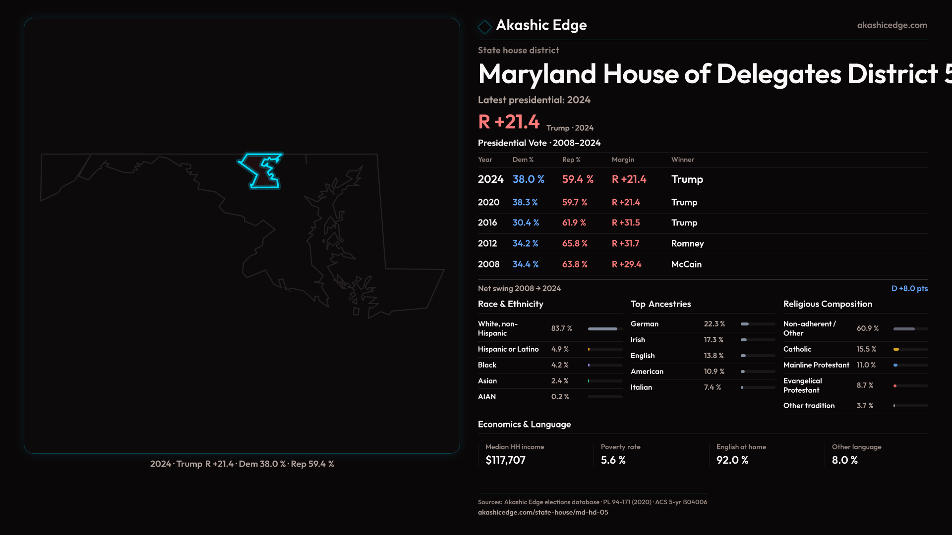 Read this geography's profile in three layers: local, state (where available), and national baseline.