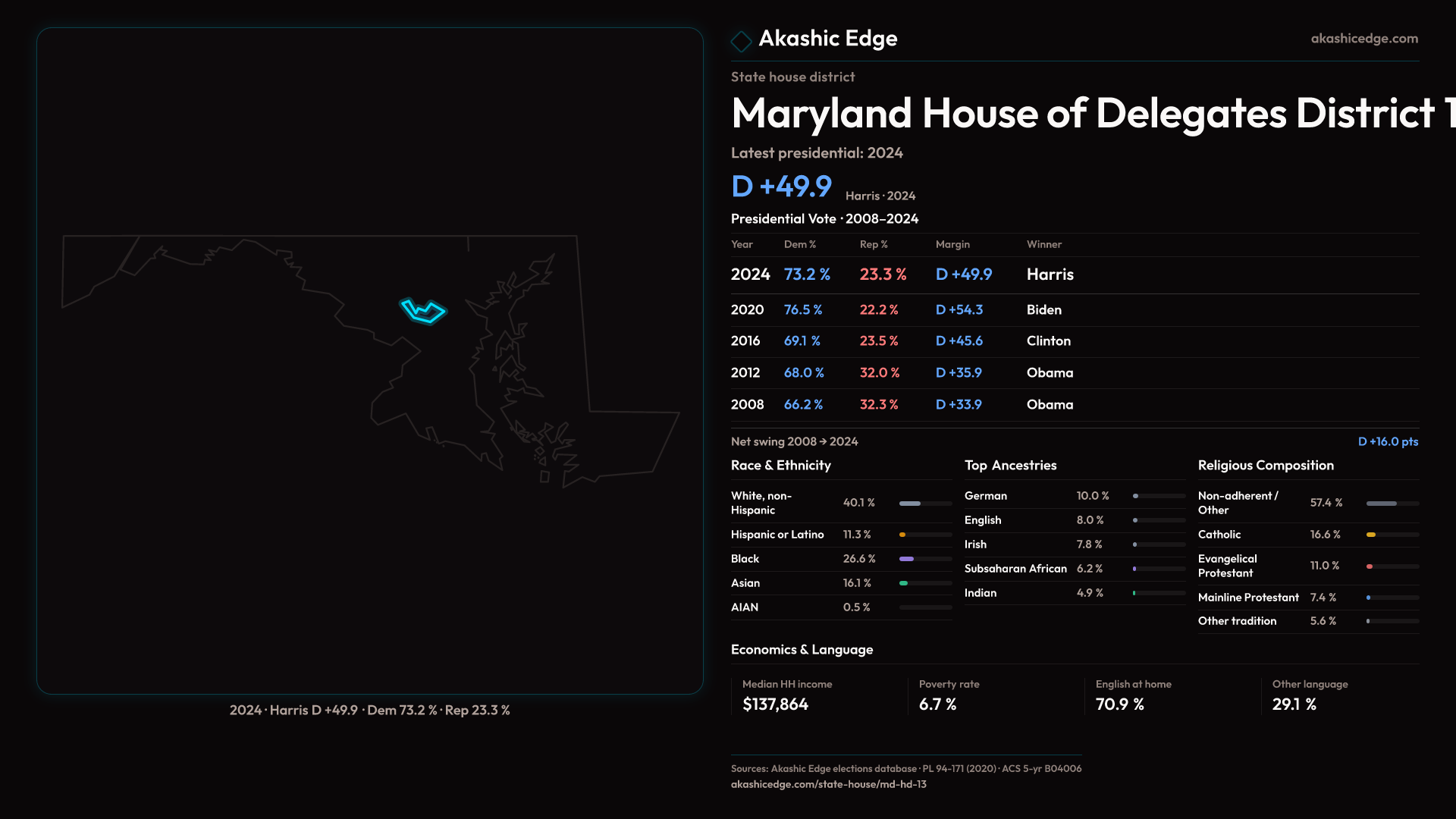 Explore MD-HD-13's political evolution with the Historian