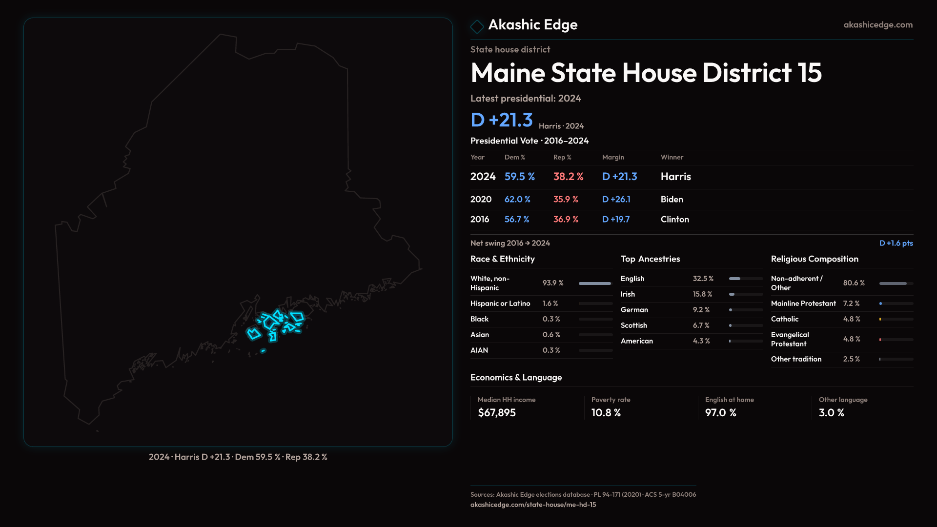 Read this geography's profile in three layers: local, state (where available), and national baseline.