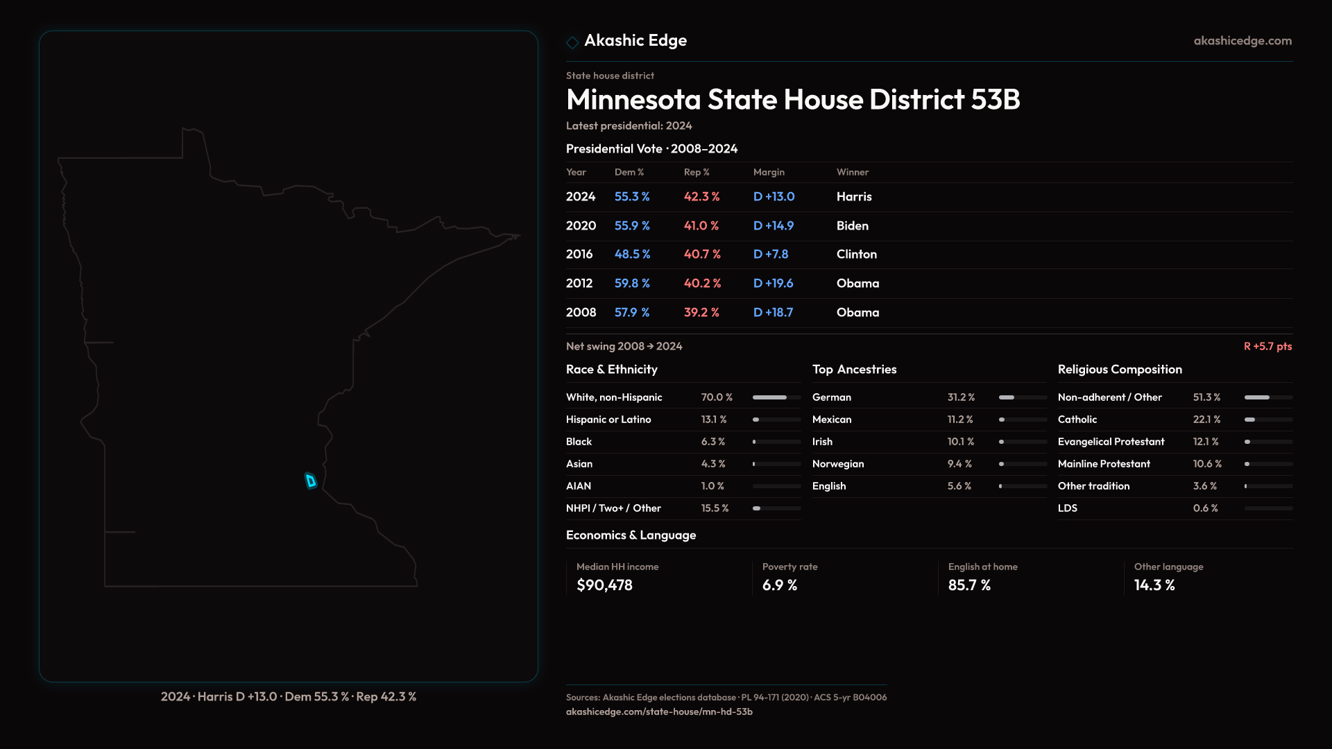 Who lives in Minnesota State House District 53B? 42,507 residents as of the 2020 Census.