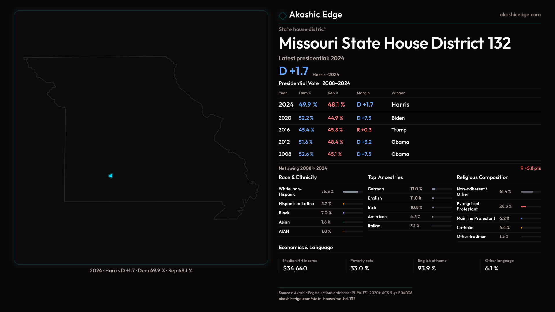 Who lives in Missouri State House District 132? 37,115 residents as of the 2020 Census.