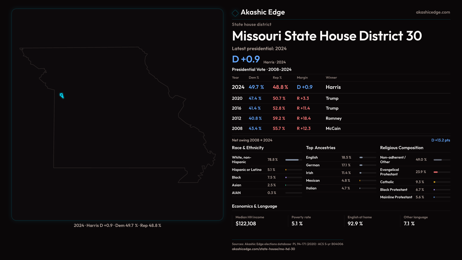 Who lives in Missouri State House District 30? 37,486 residents as of the 2020 Census.