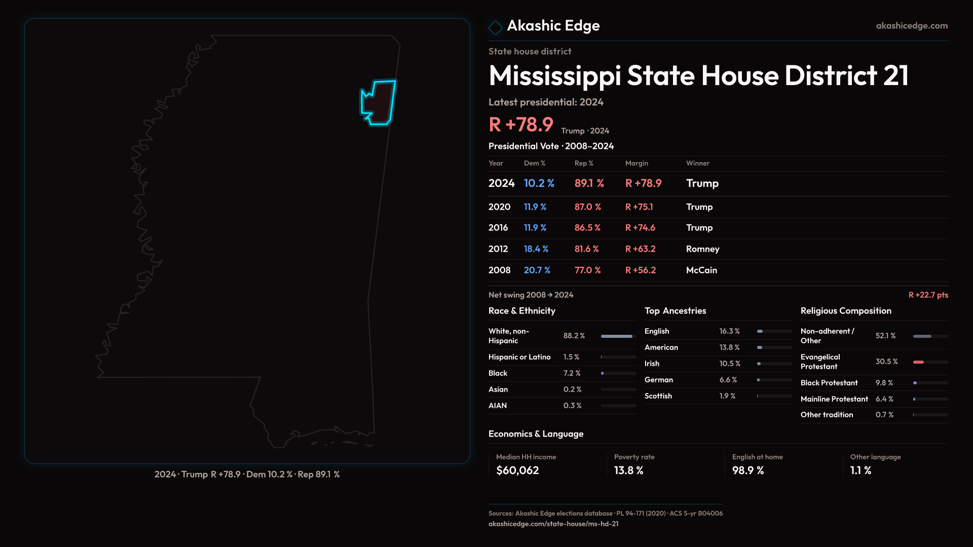 Read this geography's profile in three layers: local, state (where available), and national baseline.
