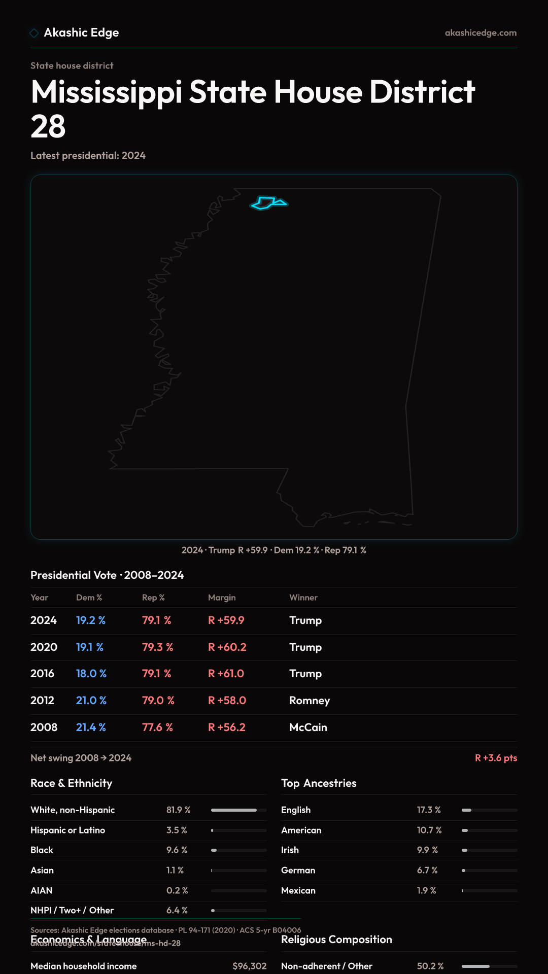 Read this geography's profile in three layers: local, state (where available), and national baseline.
