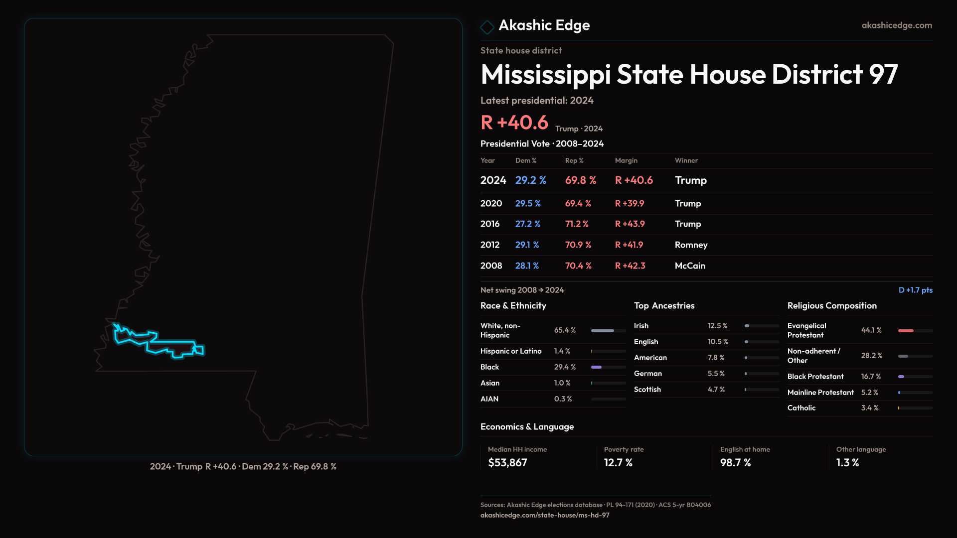 Who lives in Mississippi State House District 97? 23,912 residents as of the 2020 Census.
