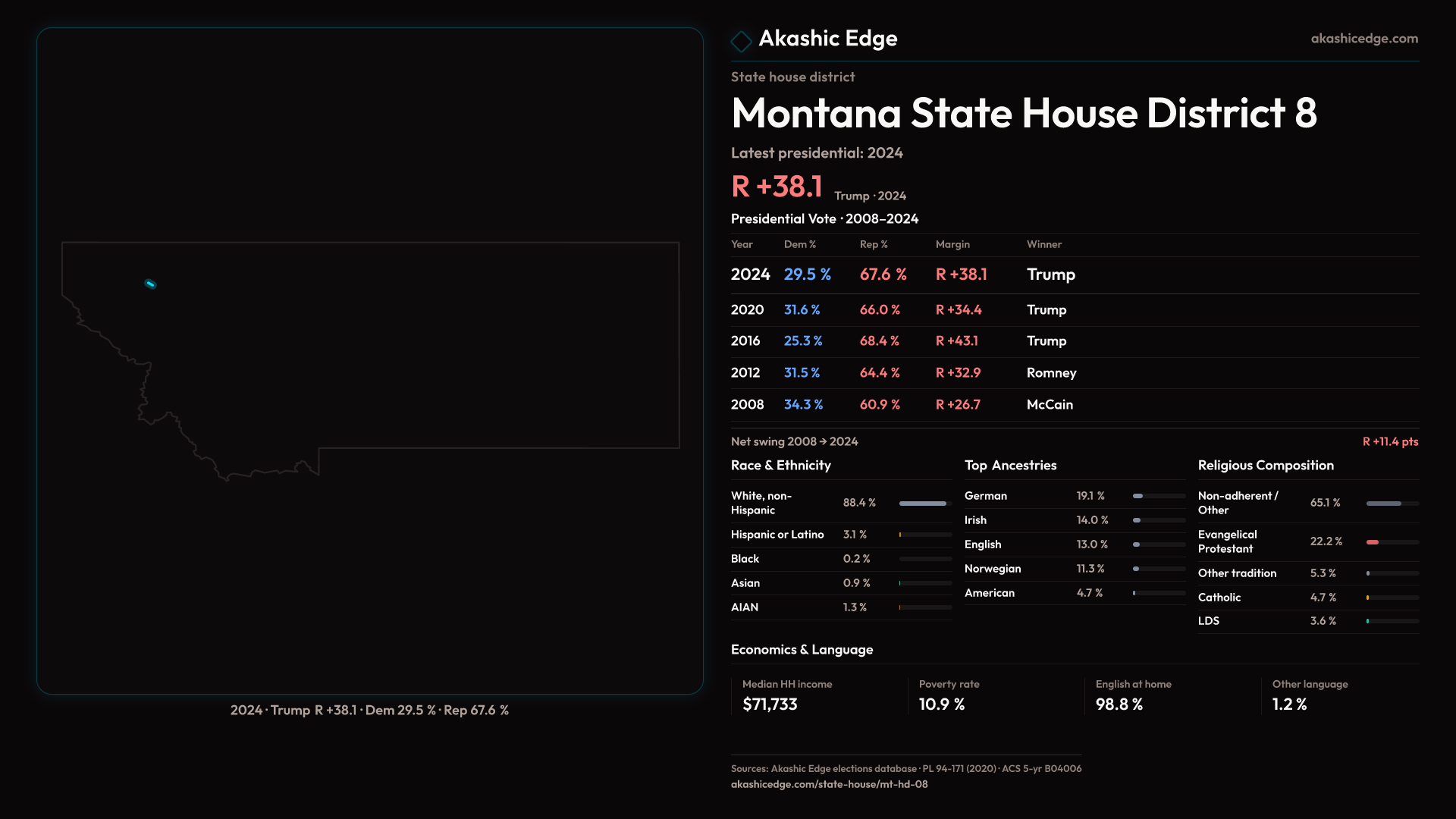 Who lives in Montana State House District 8? 10,711 residents as of the 2020 Census.