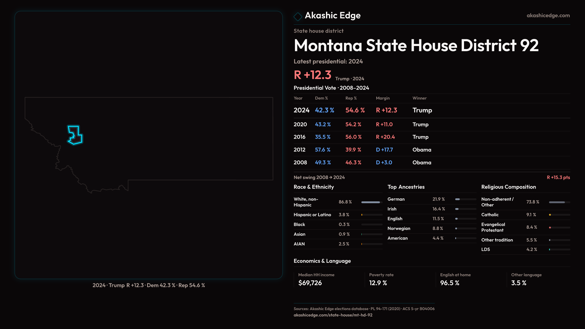 Who lives in Montana State House District 92? 10,588 residents as of the 2020 Census.