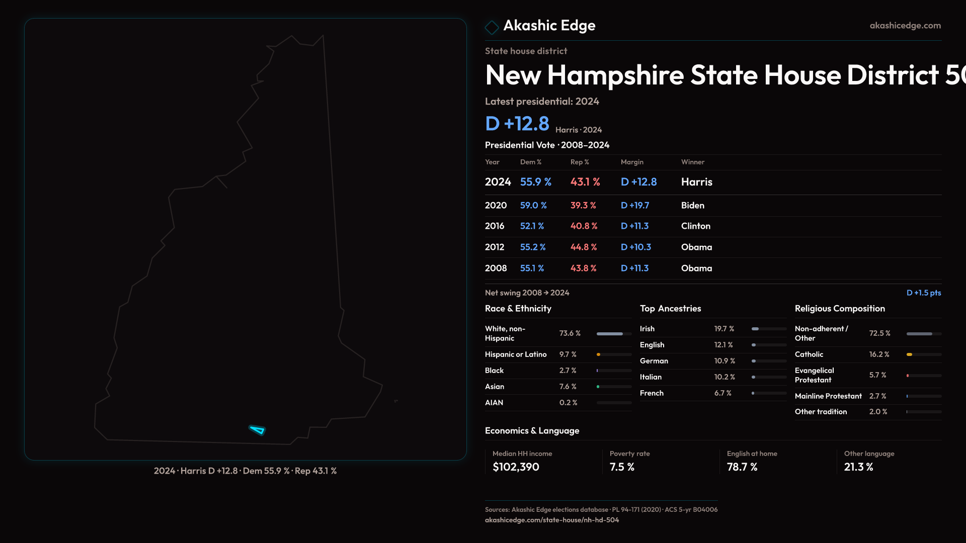 Who lives in New Hampshire State House District 504? 10,348 residents as of the 2020 Census.