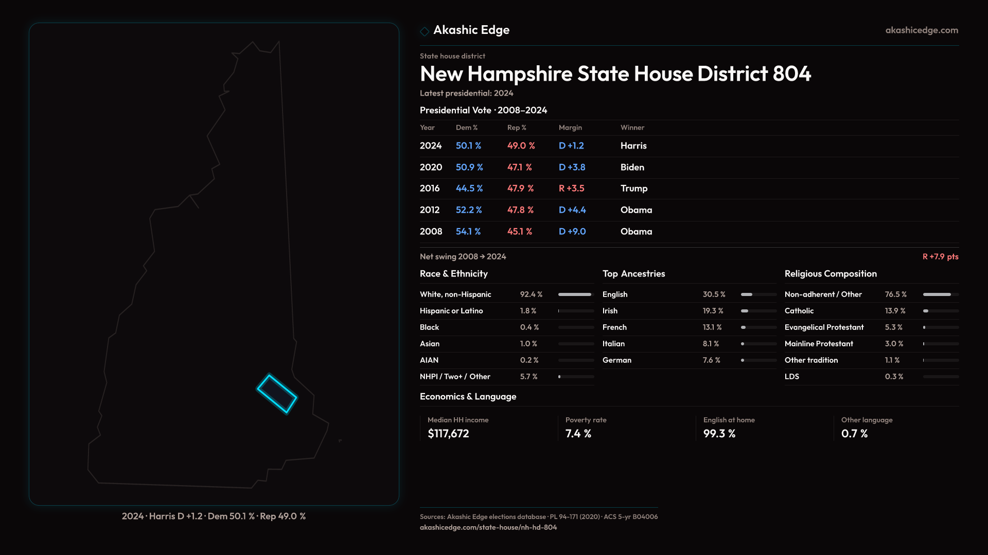 Who lives in New Hampshire State House District 804? 13,556 residents as of the 2020 Census.