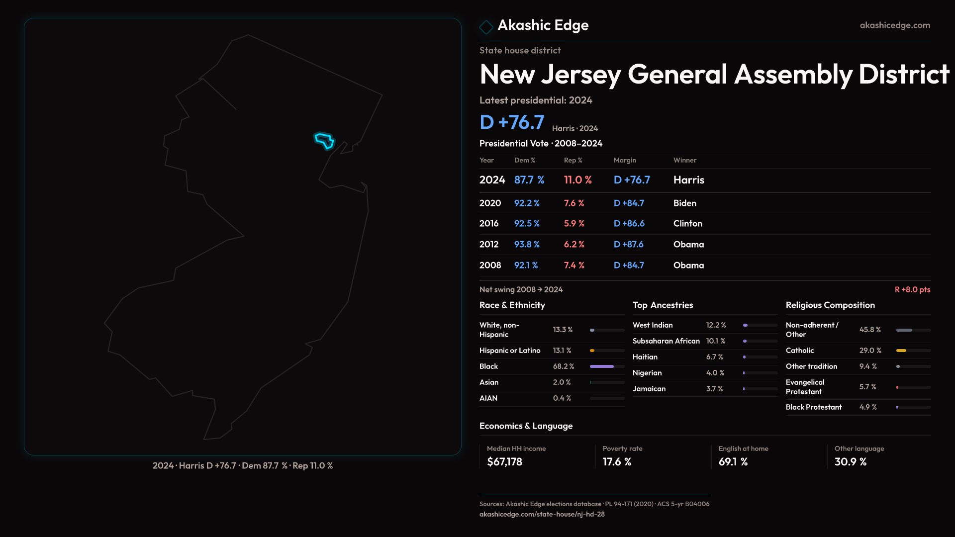 Who lives in New Jersey General Assembly District 28? 228,206 residents as of the 2020 Census.