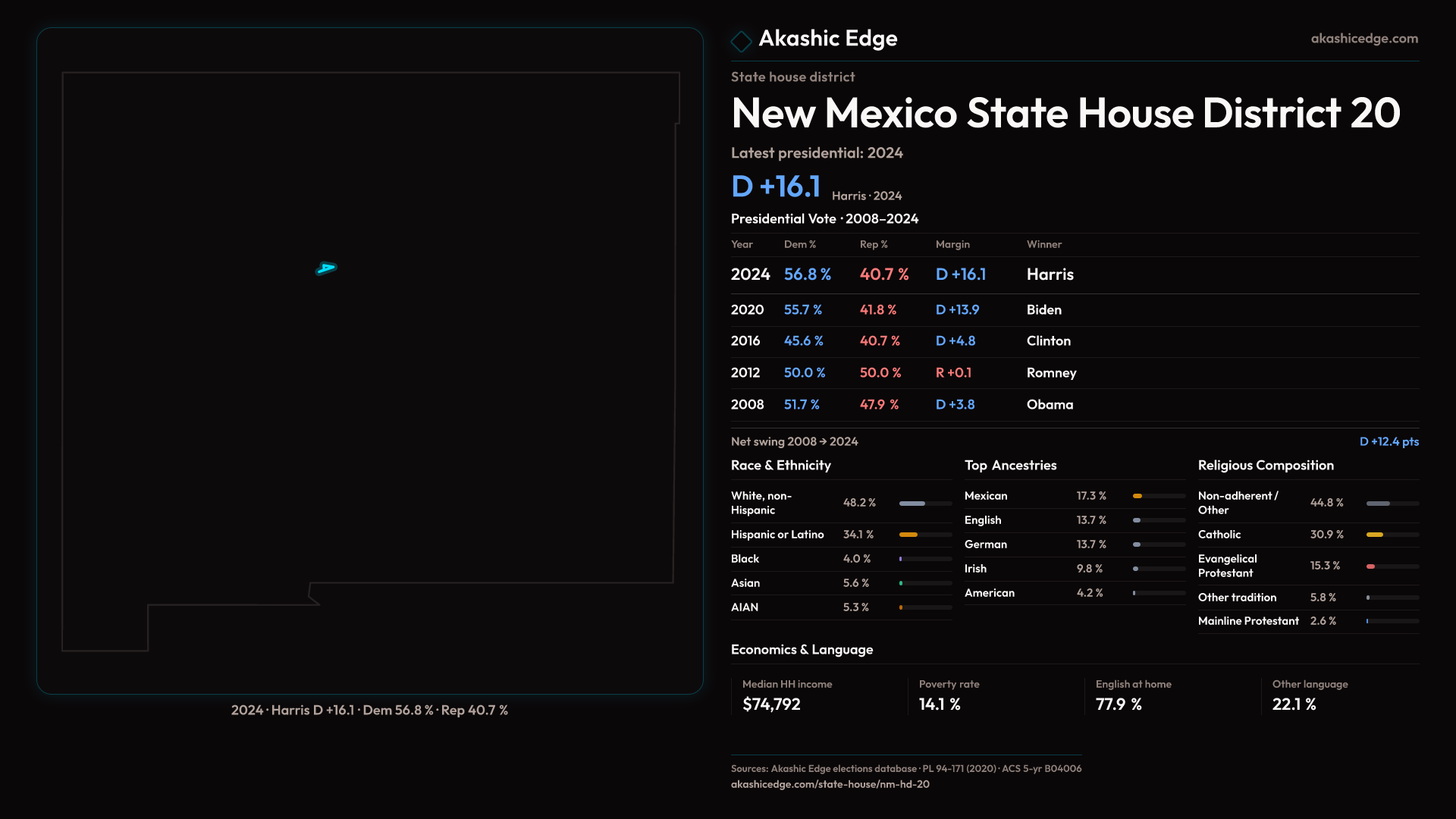 Who lives in New Mexico State House District 20? 30,886 residents as of the 2020 Census.