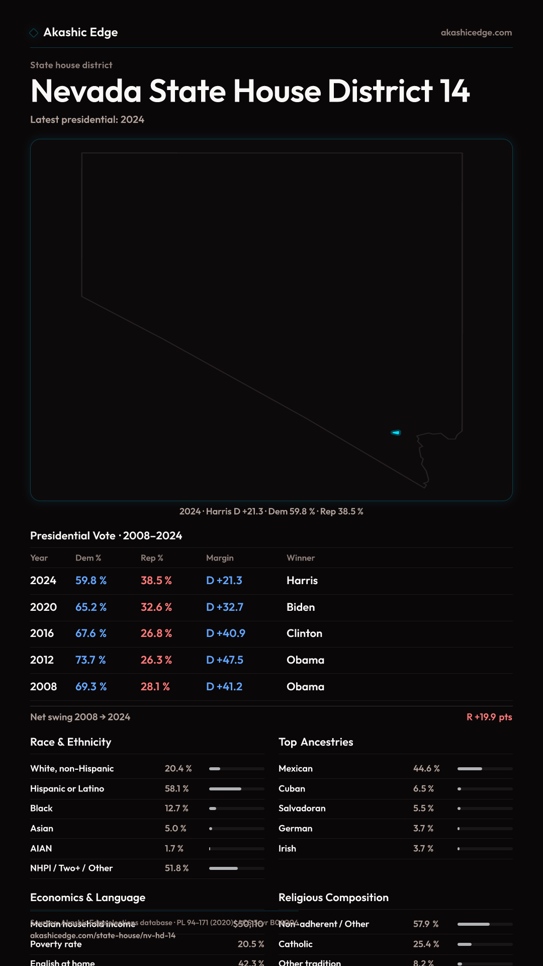 Who lives in Nevada State House District 14? 74,313 residents as of the 2020 Census.