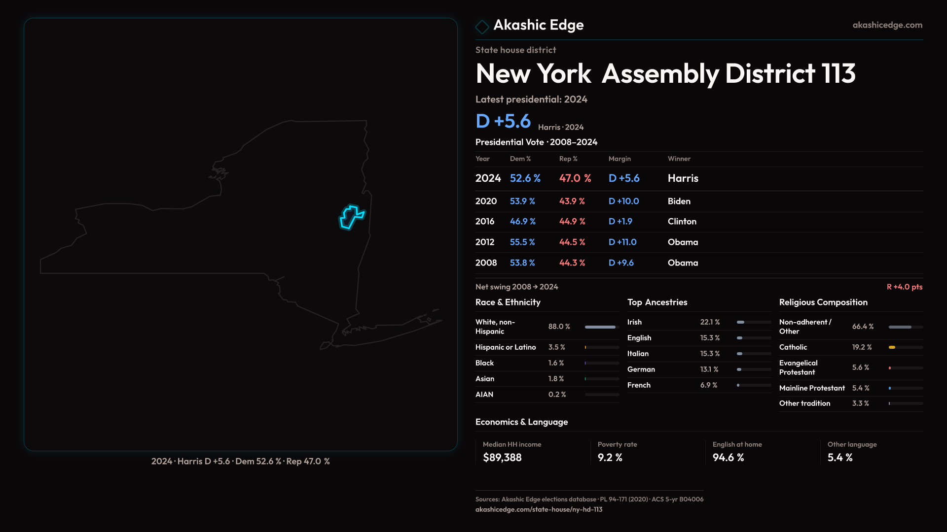 Who lives in New York Assembly District 113? 137,535 residents as of the 2020 Census.