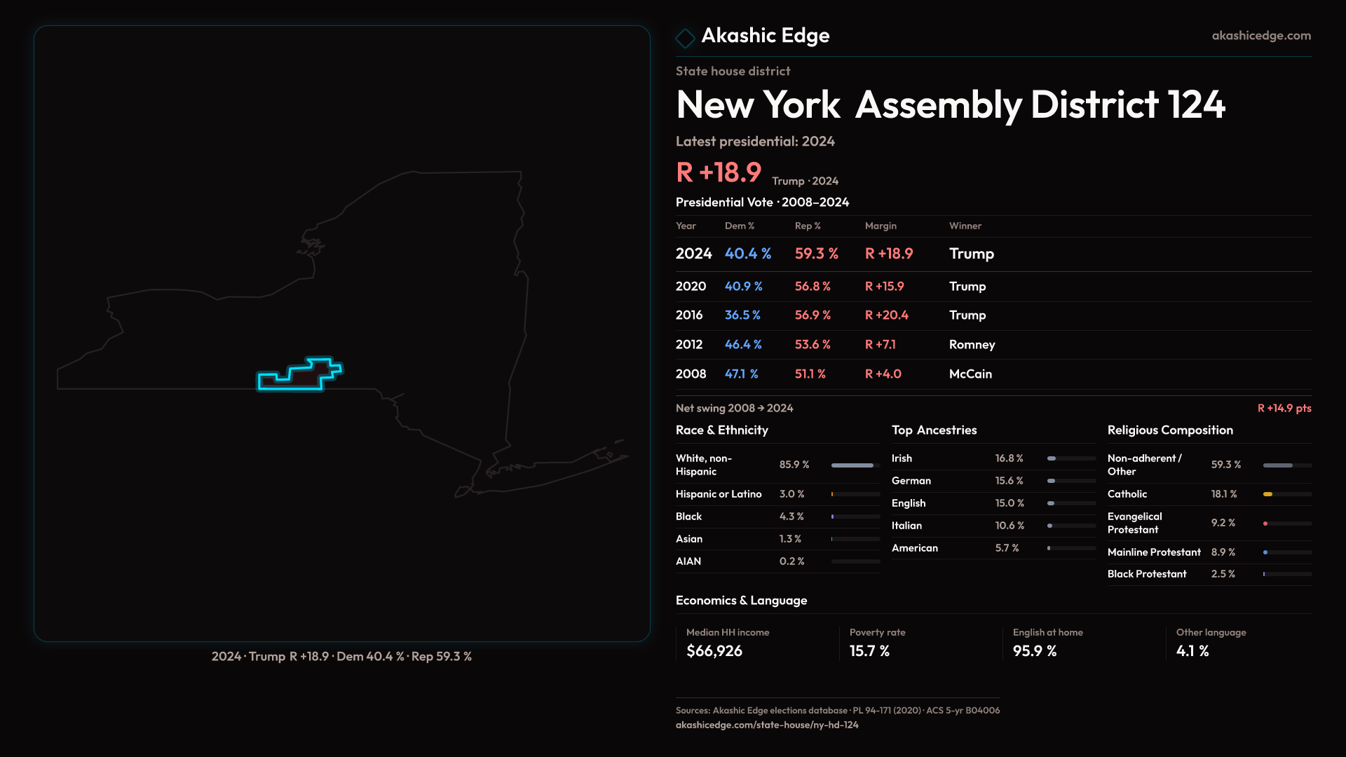 Who lives in New York Assembly District 124? 135,311 residents as of the 2020 Census.