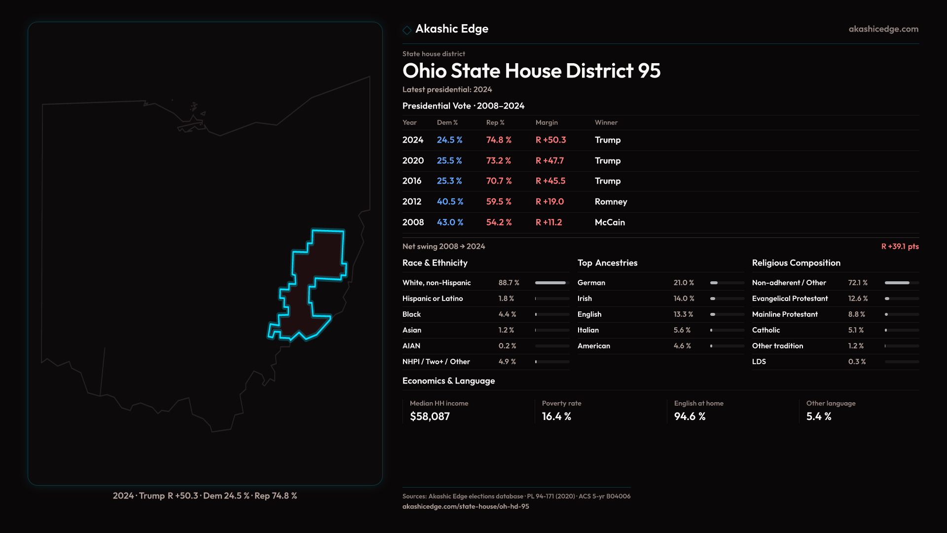 Who lives in Ohio State House District 95? 114,088 residents as of the 2020 Census.