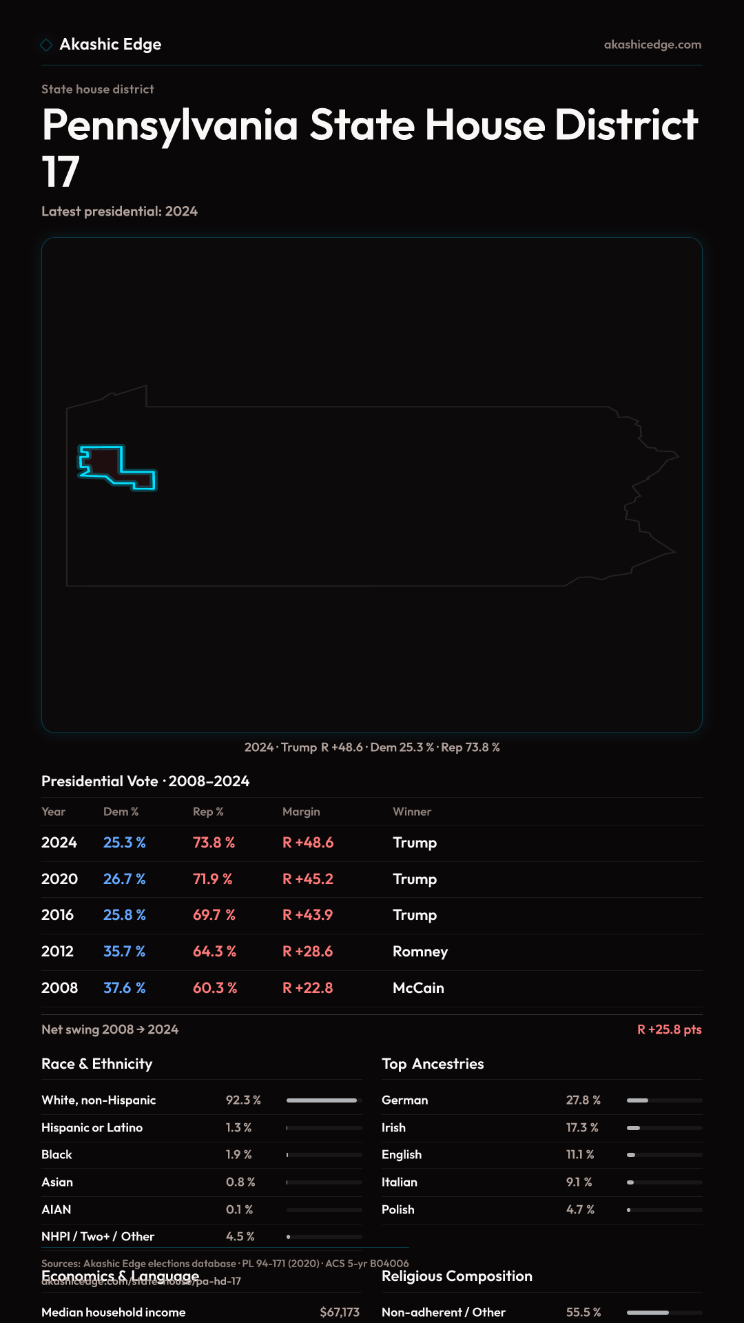 Who lives in Pennsylvania State House District 17? 66,834 residents as of the 2020 Census.