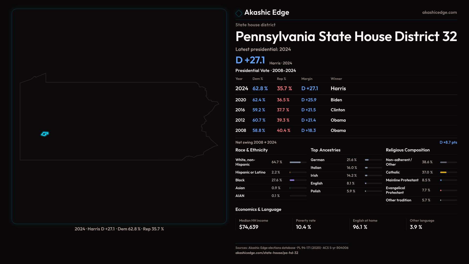 Who lives in Pennsylvania State House District 32? 64,085 residents as of the 2020 Census.