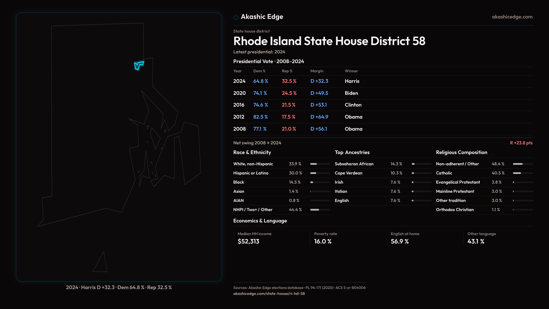 Who lives in Rhode Island State House District 58? 14,366 residents as of the 2020 Census.