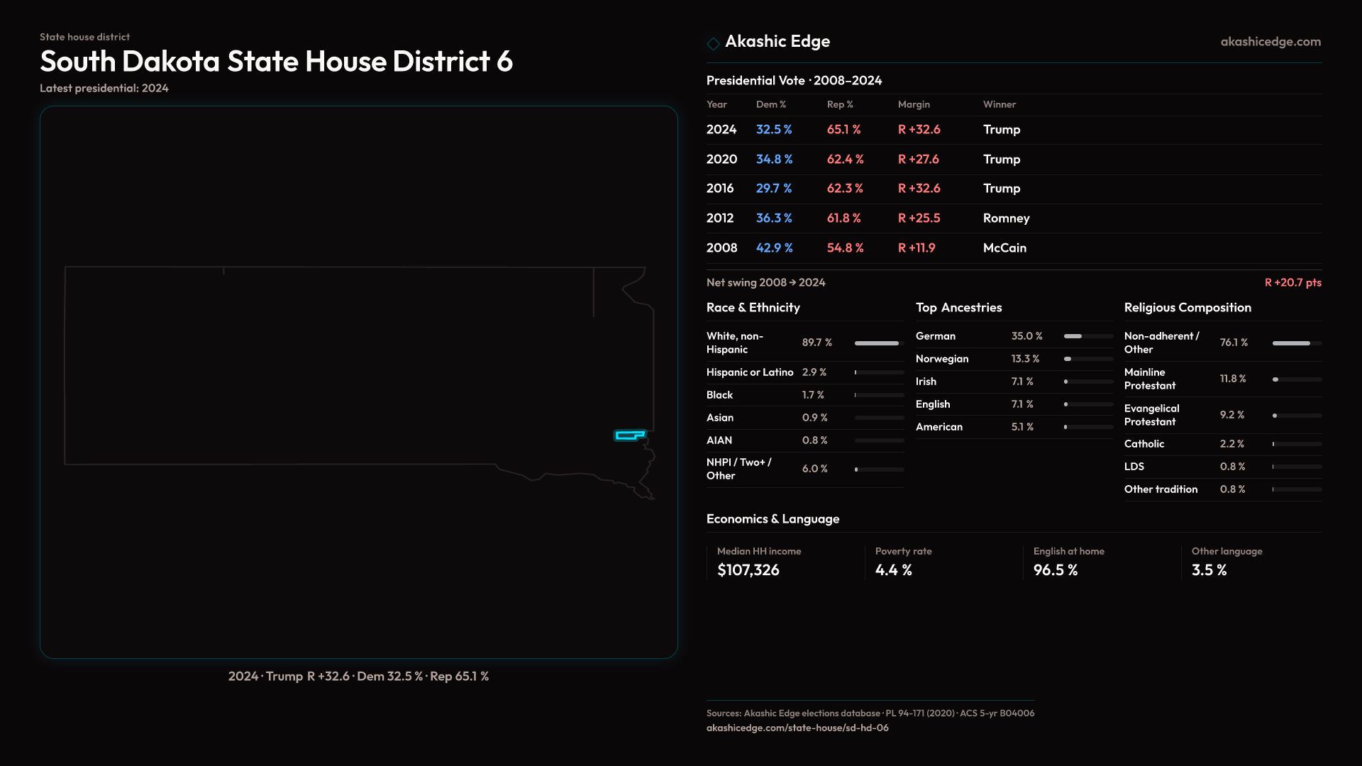 Who lives in South Dakota State House District 6? 25,075 residents as of the 2020 Census.