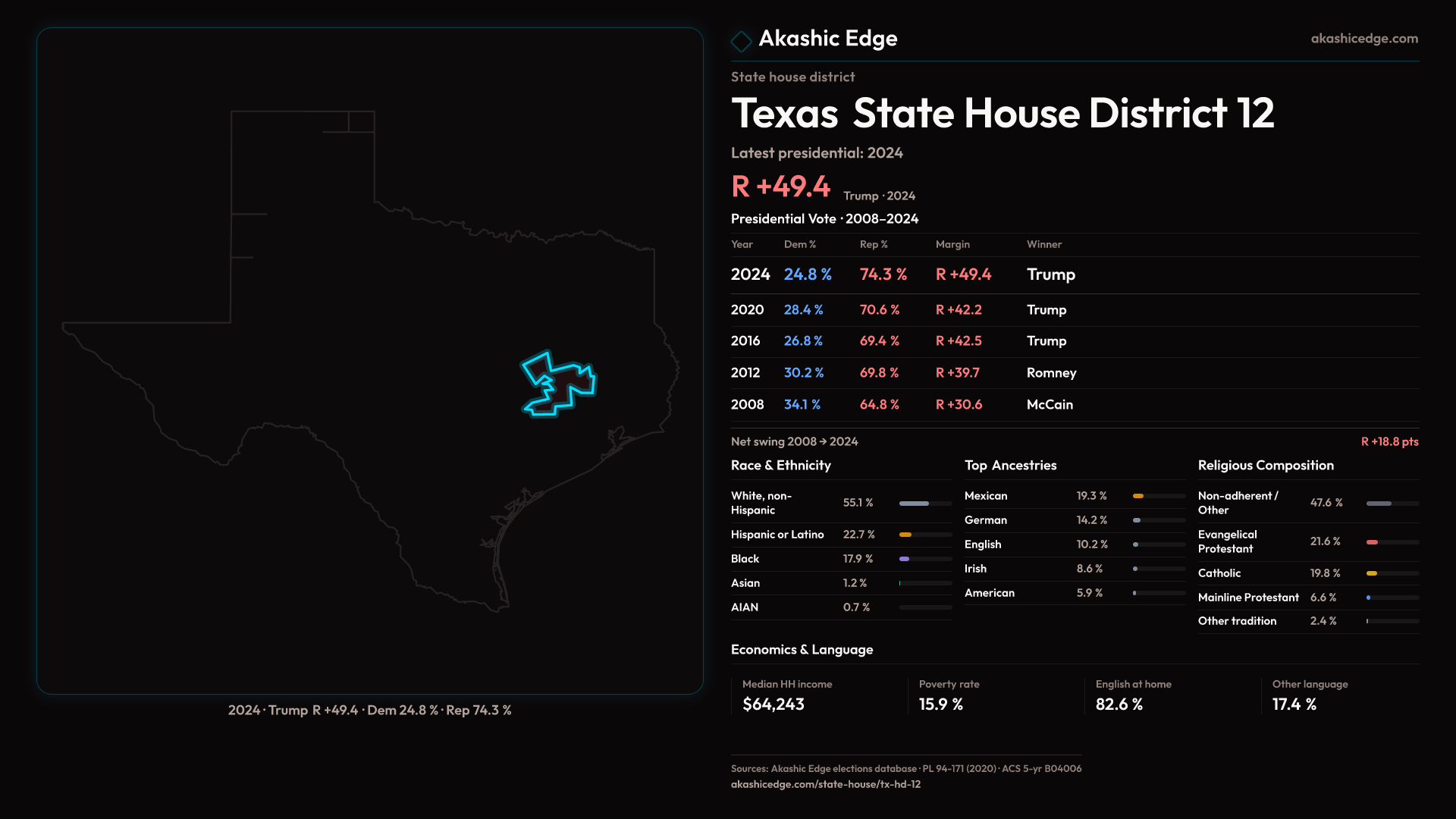 Shifted 7.2pp toward Republicans in 2024 — 202K residents