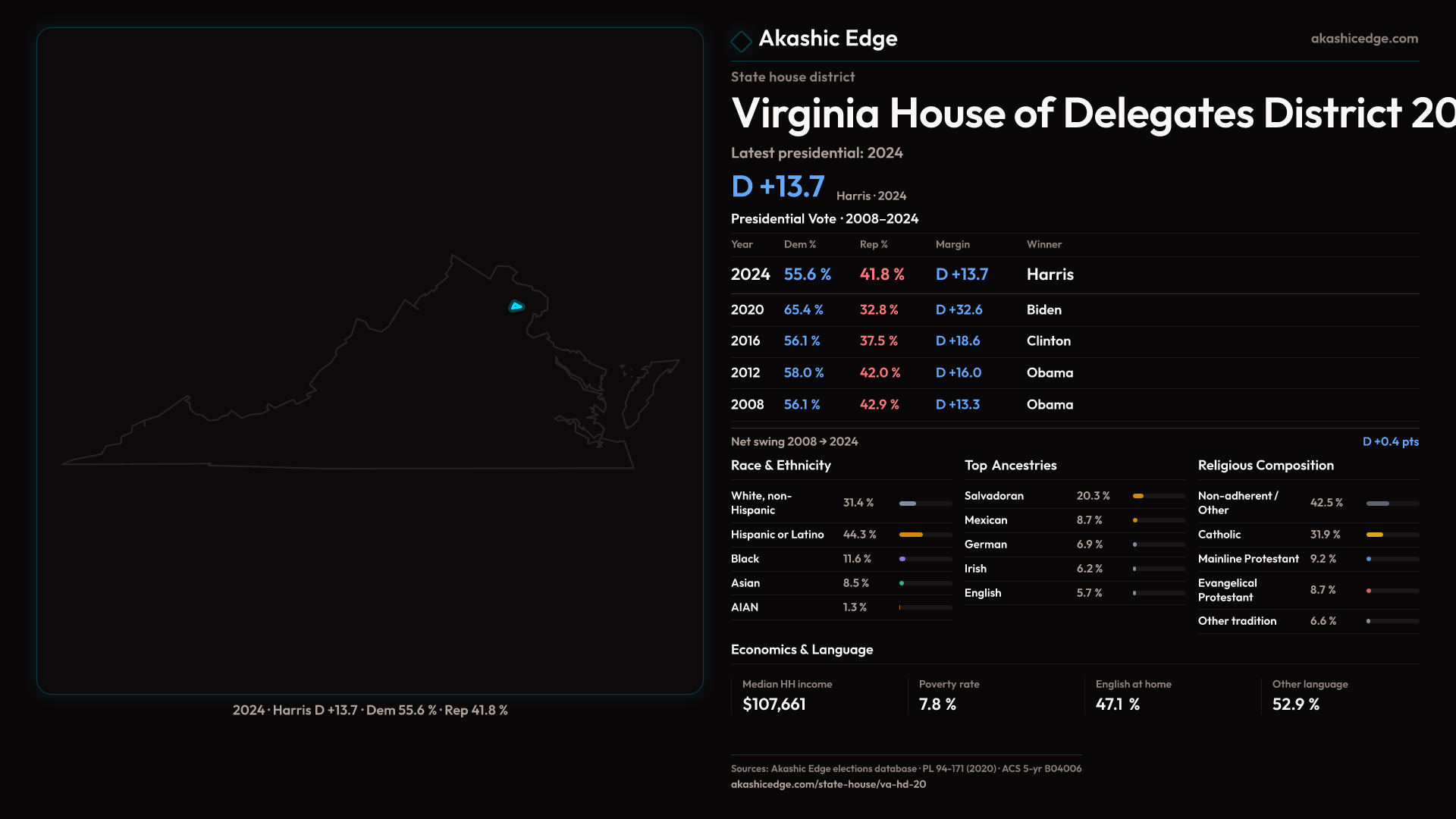 Read this geography's profile in three layers: local, state (where available), and national baseline.