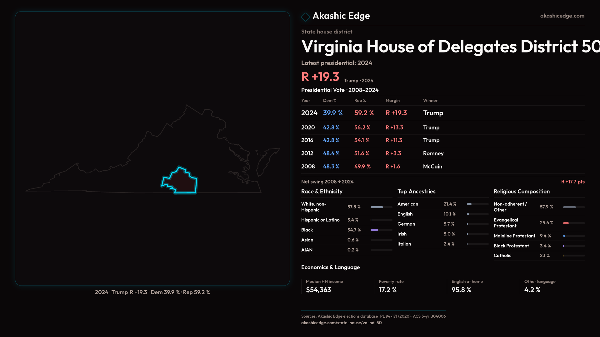 Shifted 6.0pp toward Republicans in 2024 — 85K residents