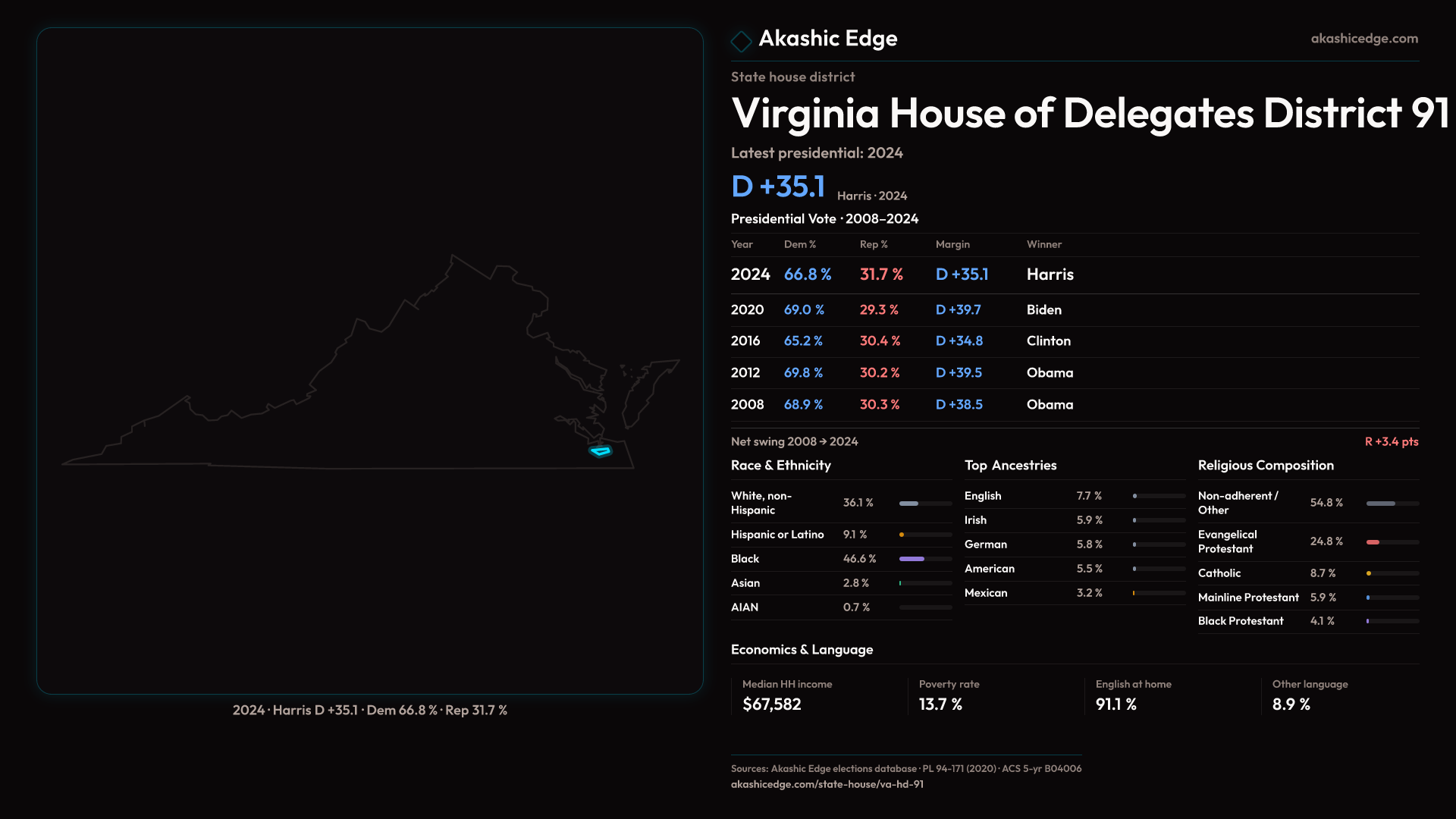 Who lives in Virginia House of Delegates District 91? 86,185 residents as of the 2020 Census.