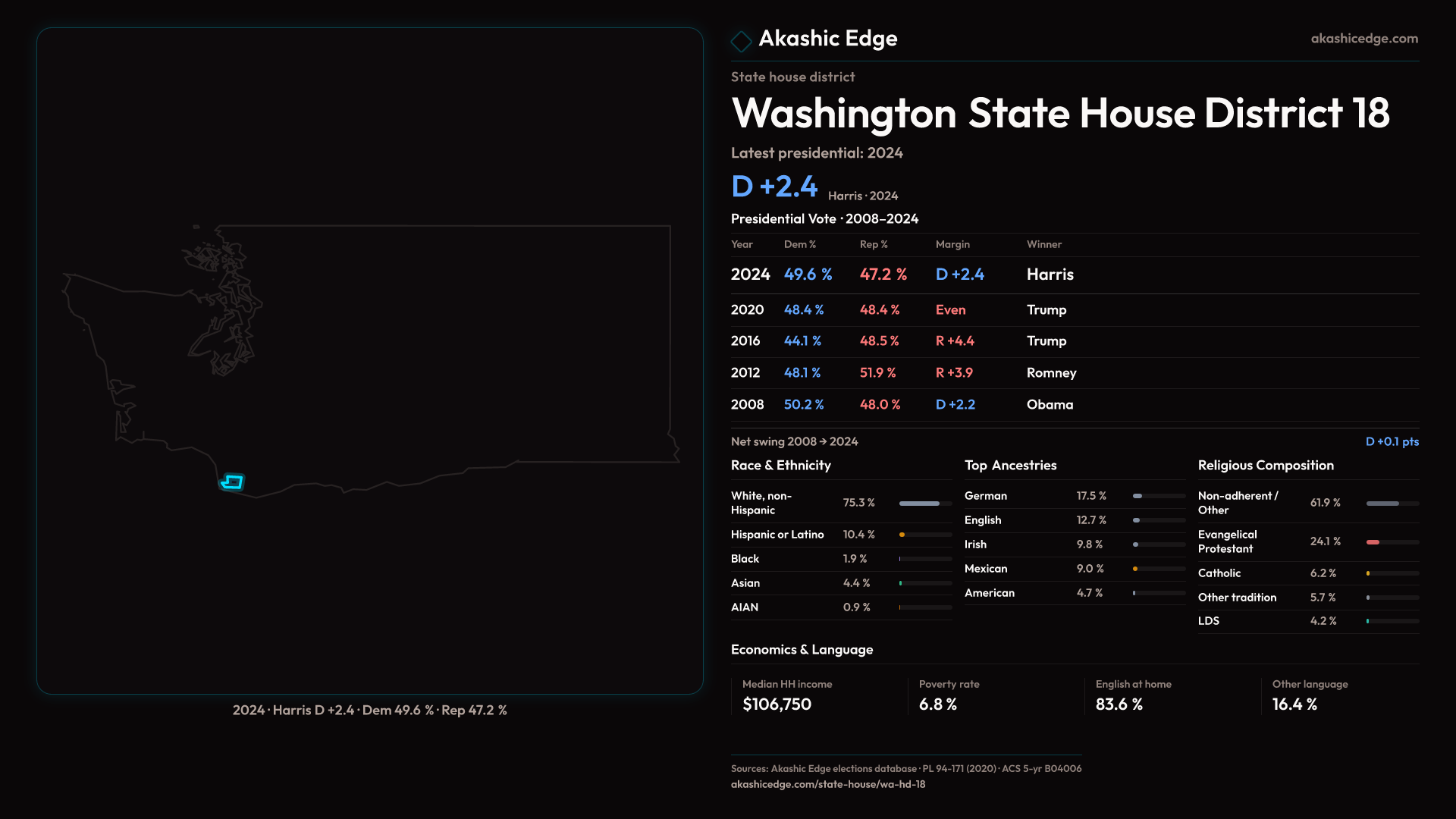 Explore WA-HD-18's political evolution with the Historian