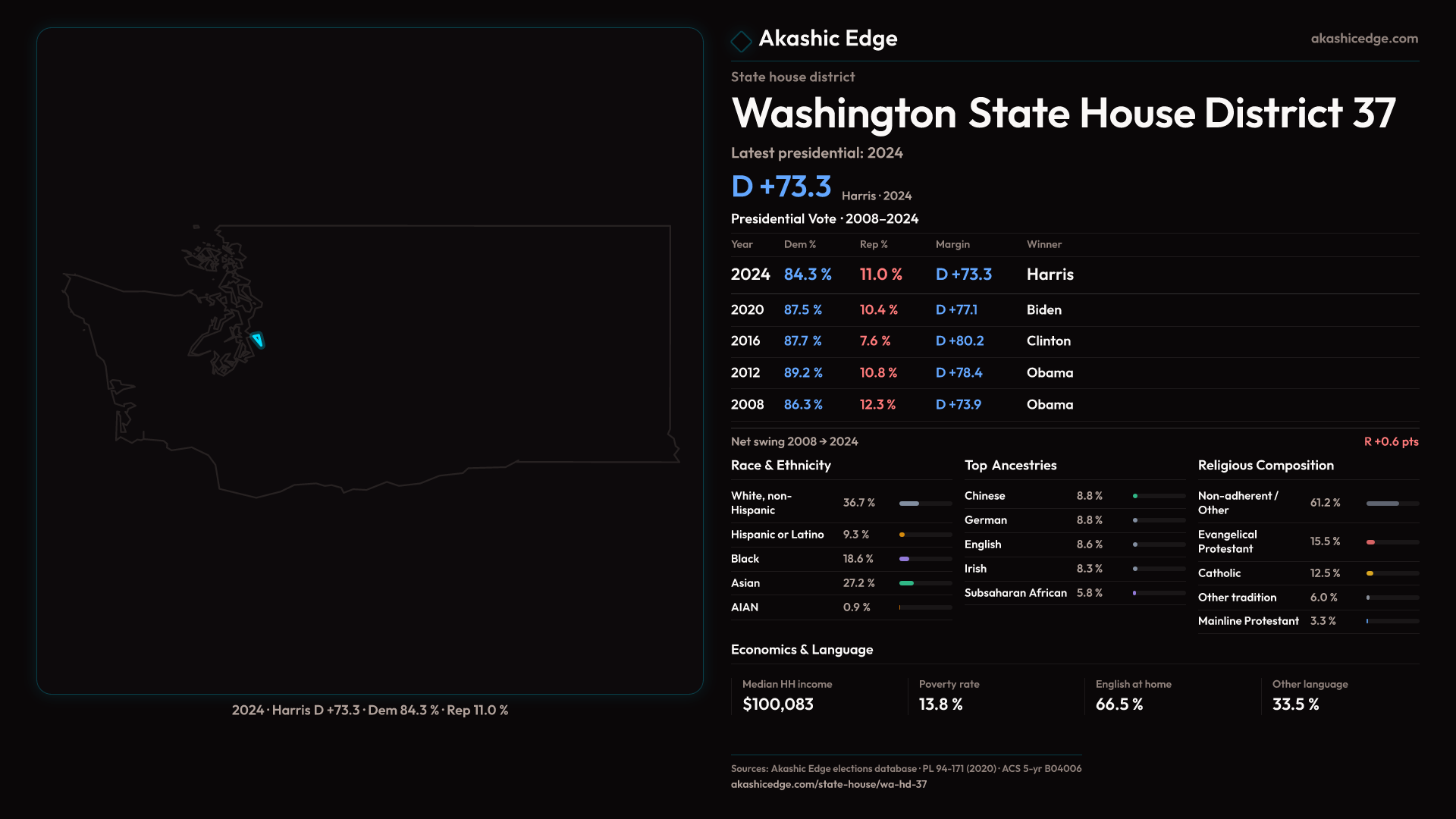 Who lives in Washington State House District 37? 156,652 residents as of the 2020 Census.