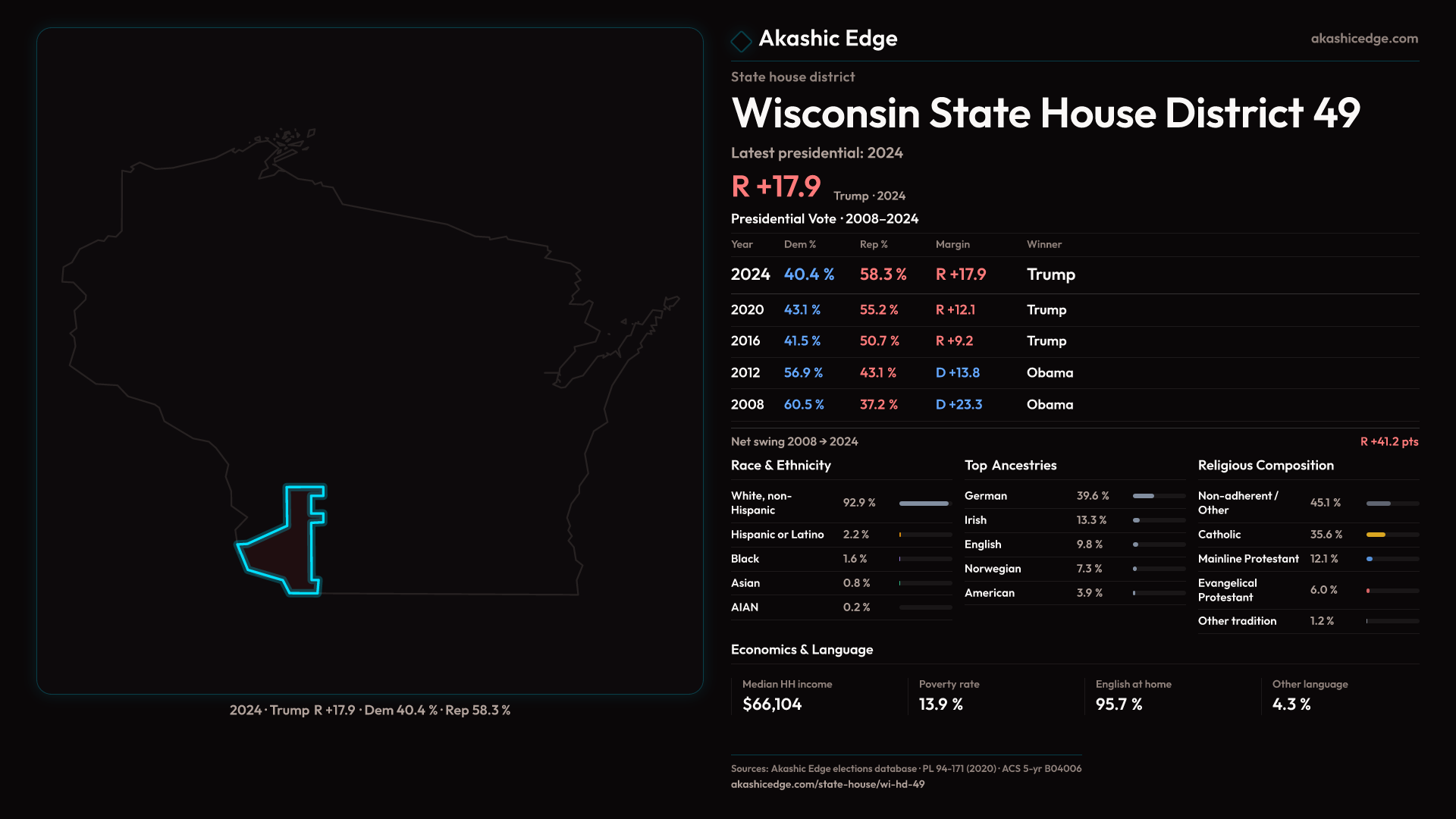 Who lives in Wisconsin State House District 49? 59,708 residents as of the 2020 Census.