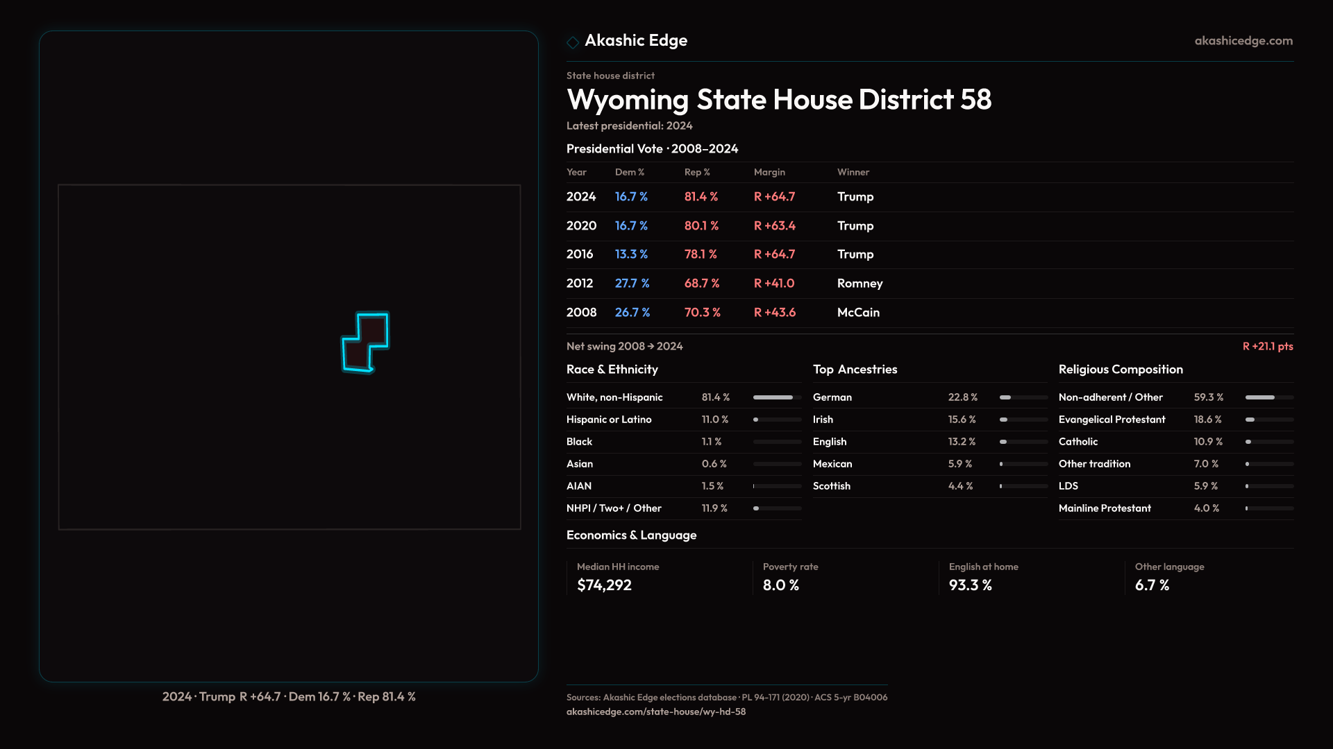 Read this geography's profile in three layers: local, state (where available), and national baseline.
