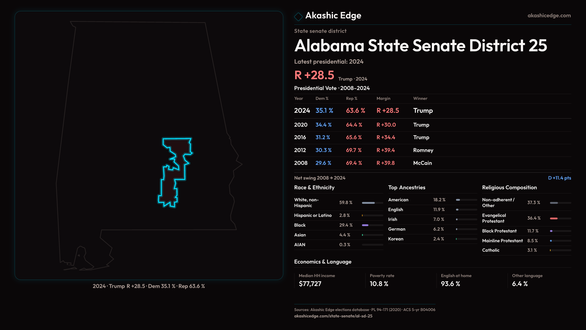 Who lives in Alabama State Senate District 25? 147,800 residents as of the 2020 Census.