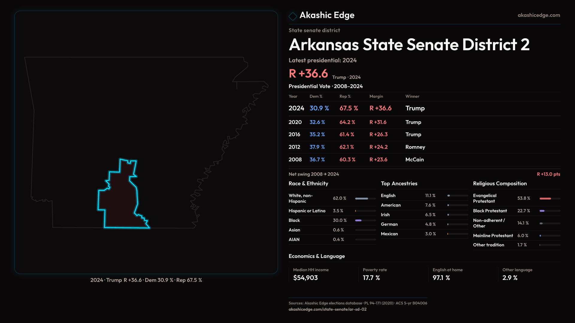 Who lives in Arkansas State Senate District 2? 84,817 residents as of the 2020 Census.